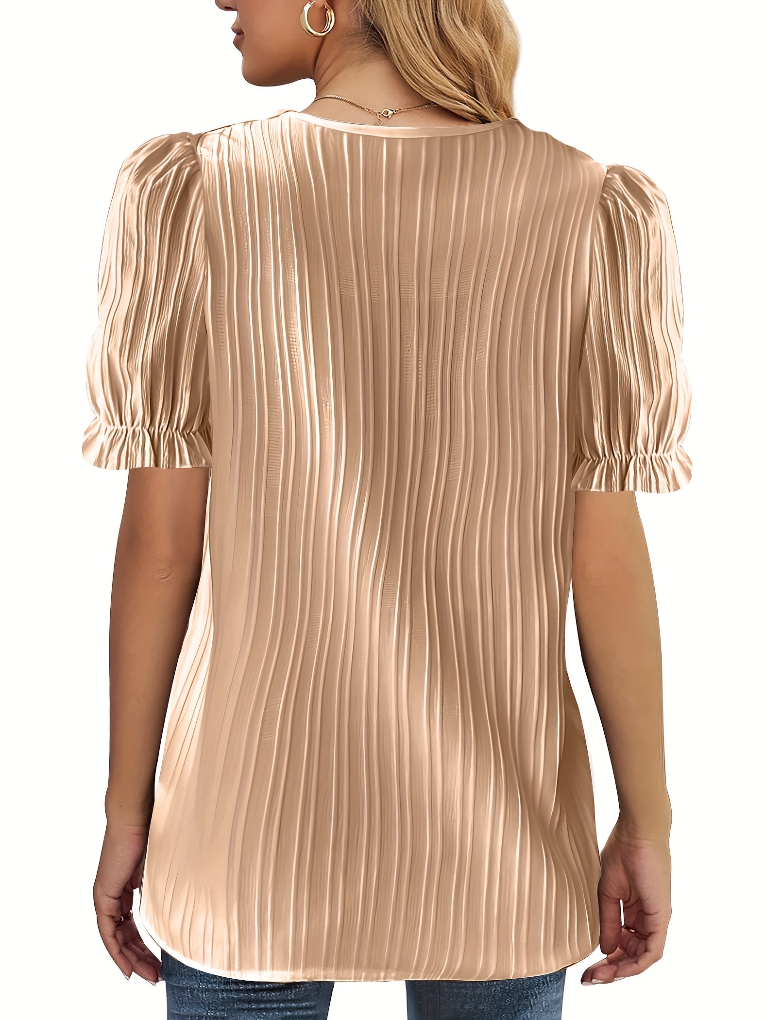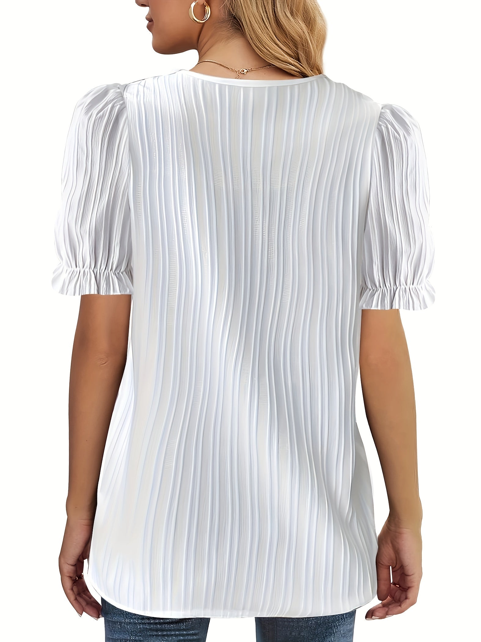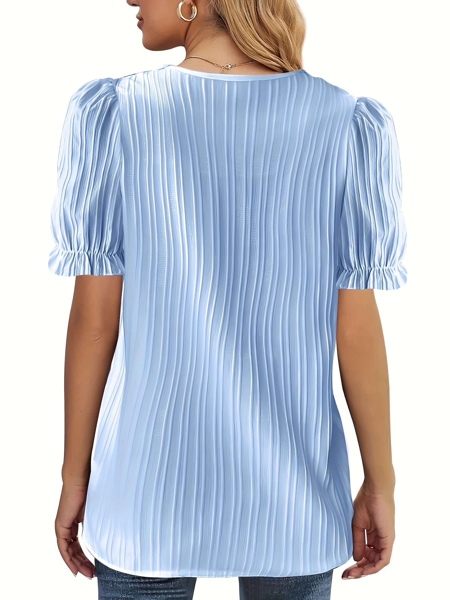Flattering Women's Puff Sleeve Blouse in Soft Pastel Shades - Perfect for Casual and Dressy Outings