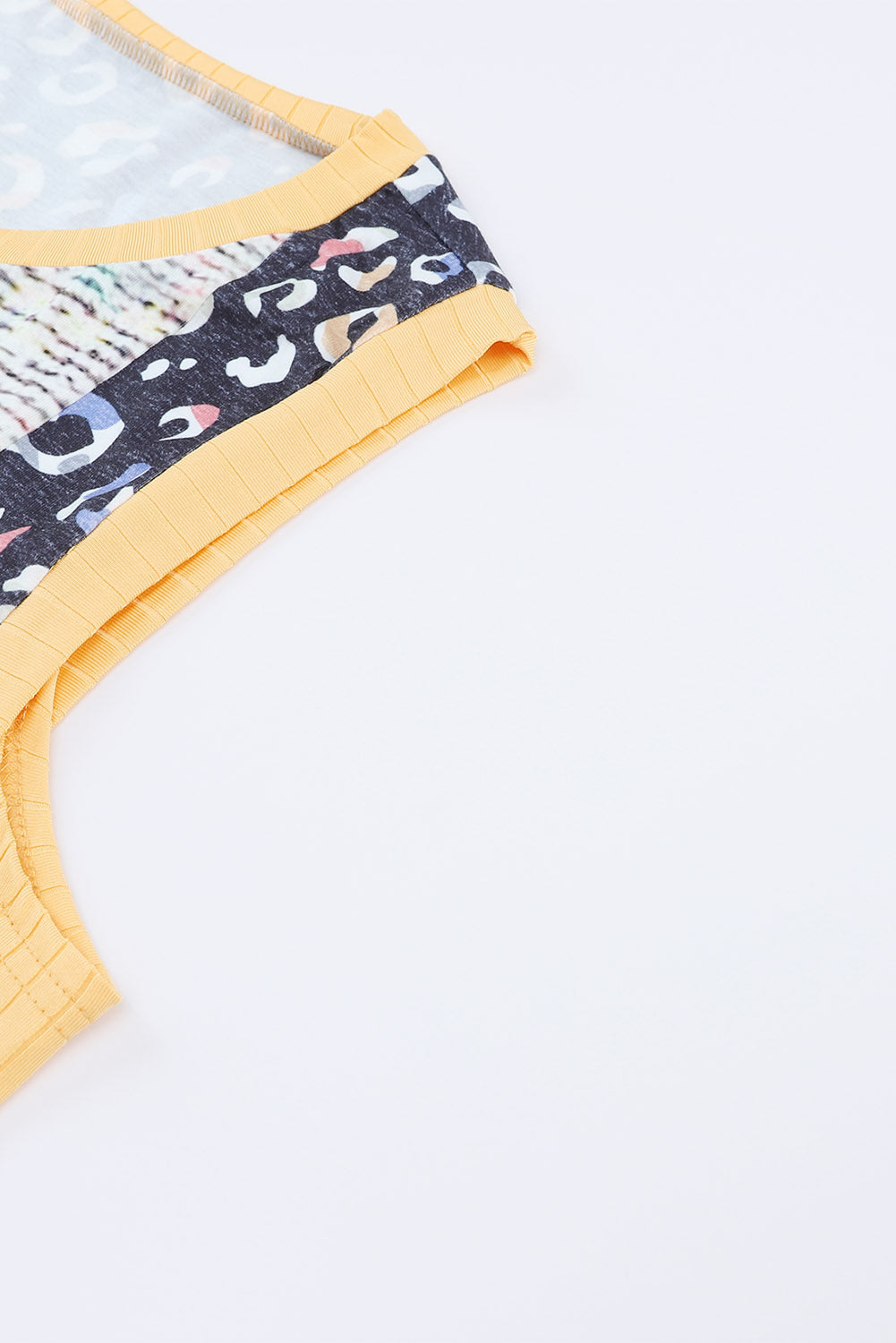 Make a fashion statement with the combination of leopard and chevron prints, creating a chic and unique aesthetic. Whether you're heading out for a casual outing or a more formal event, this tank top is a must-have for effortless style.
