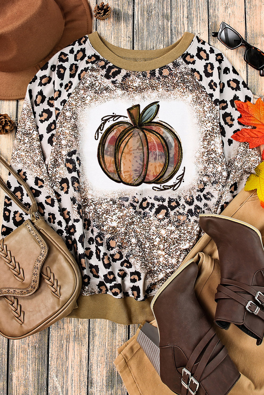 Leopard Tie Dyed Polished Pumpkin Graphic Long Sleeve Top