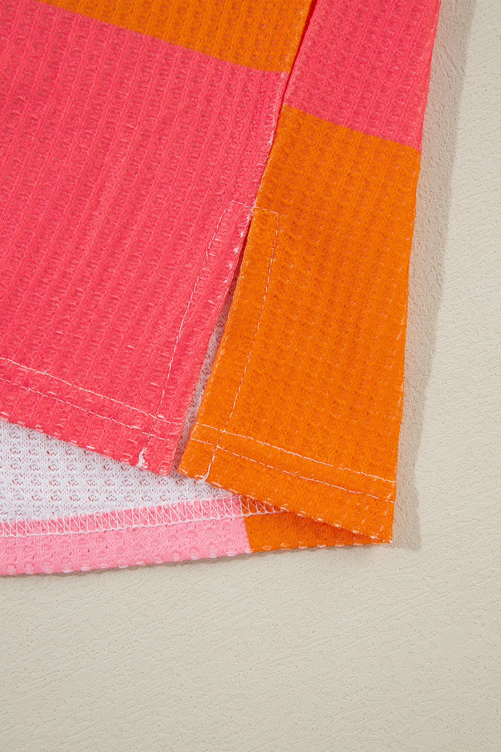 Don't miss out on this trendy addition to your wardrobe. Grab your Light Blue Waffle Knit Colorblock Loose T-Shirt today and redefine your casual style!