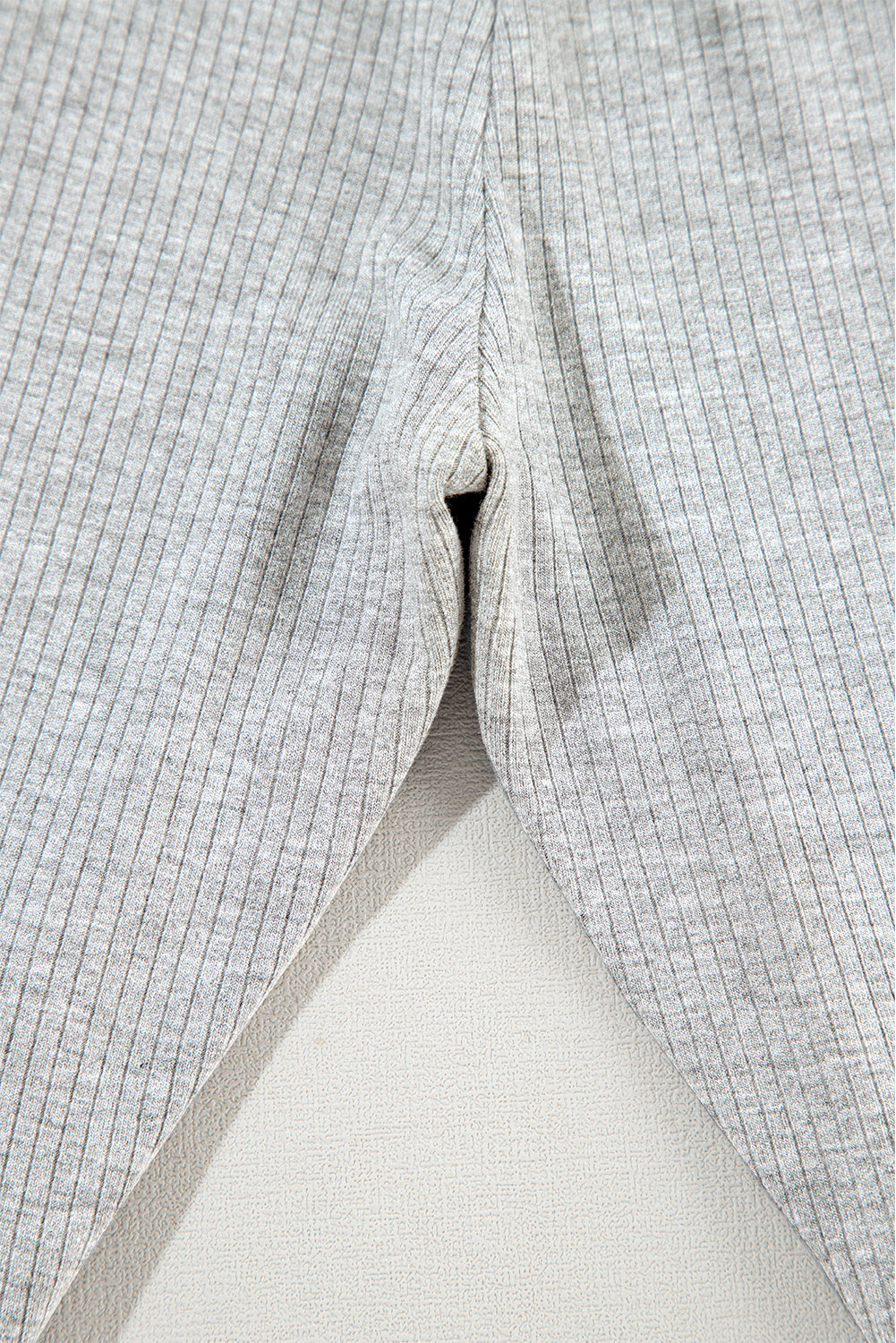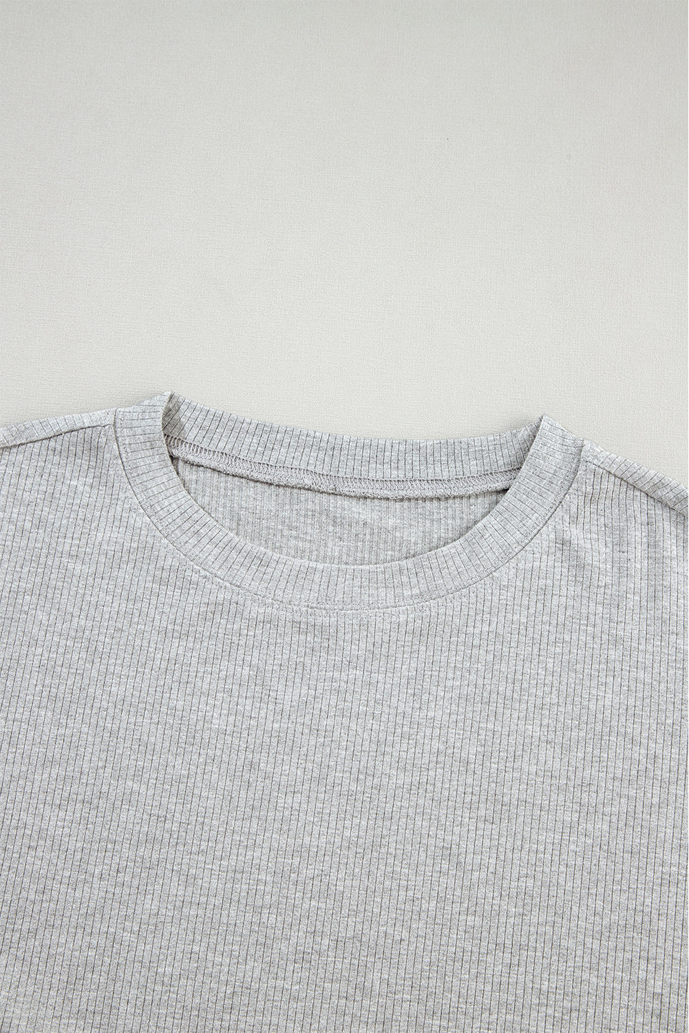 Light Grey Solid Color Loose Tunic Top and Slim Shorts Set
