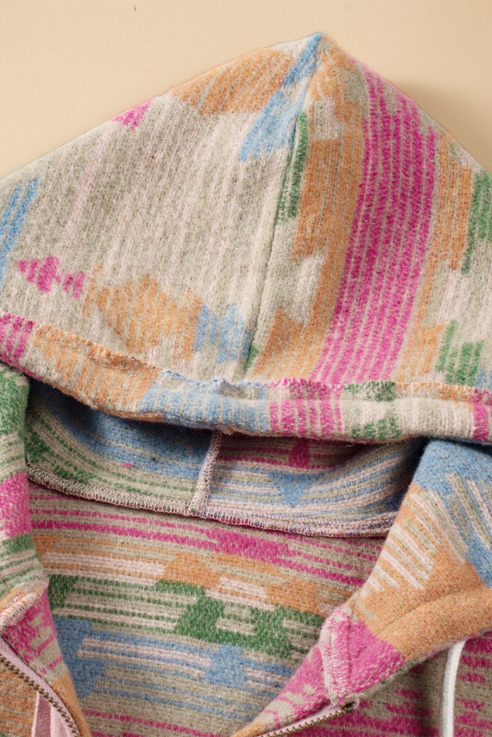 Light Pink Aztec Patch Drawstring Hooded Zip Up Jacket