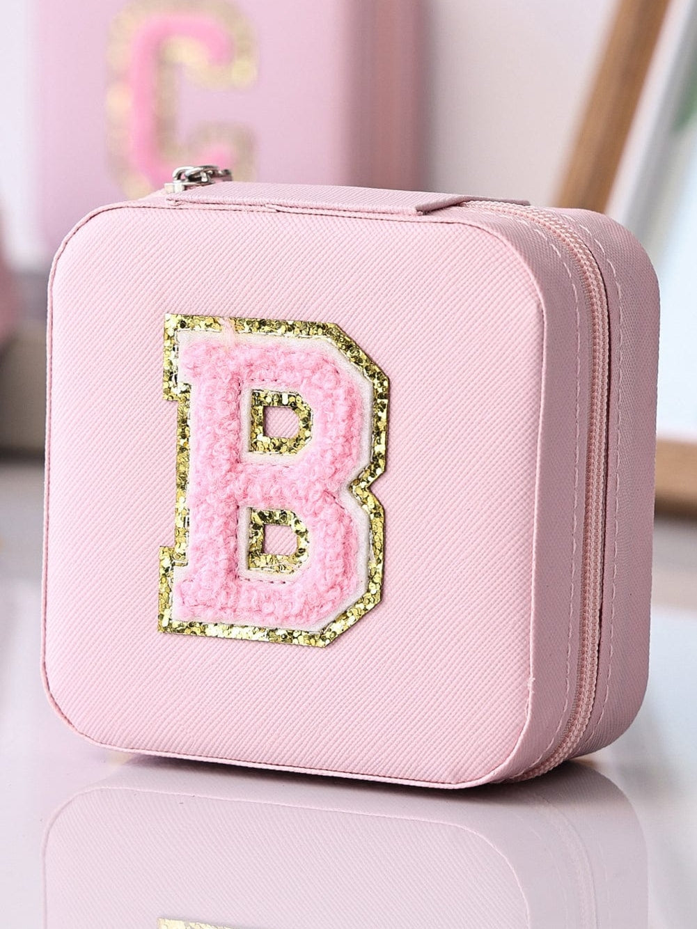 Light Pink Chenille B Graphic Portable Jewelry Case with Mirror