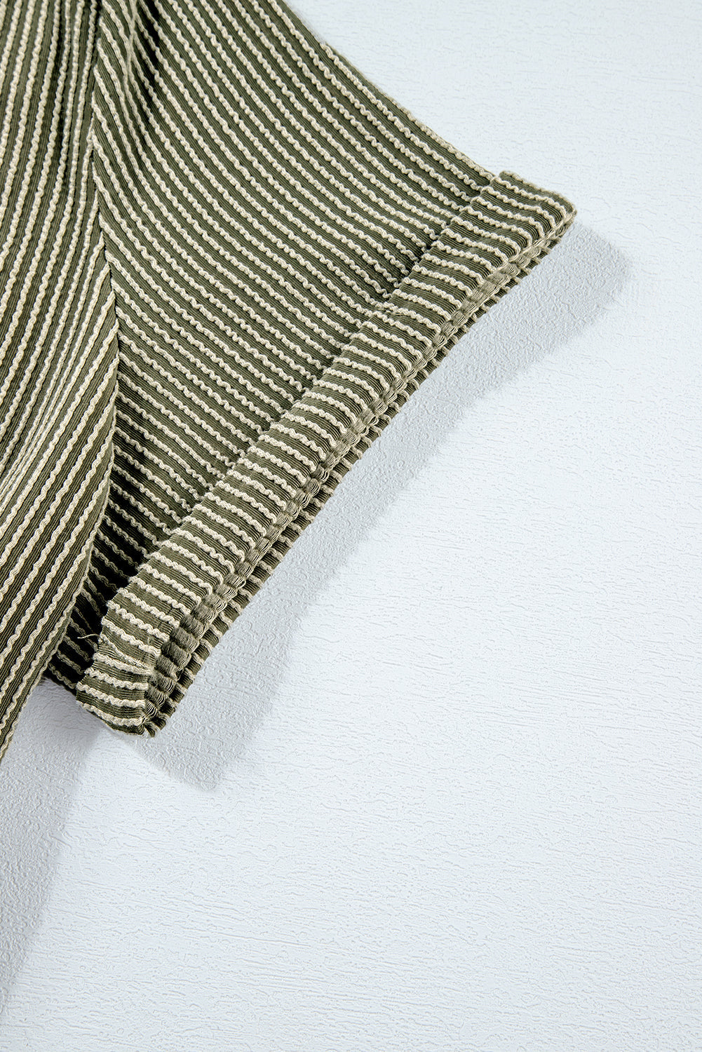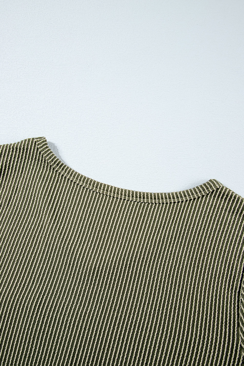 Upgrade Your Casual Look with Meadow Mist Green Plus Size Corded V Neck Patch Pocket Tee