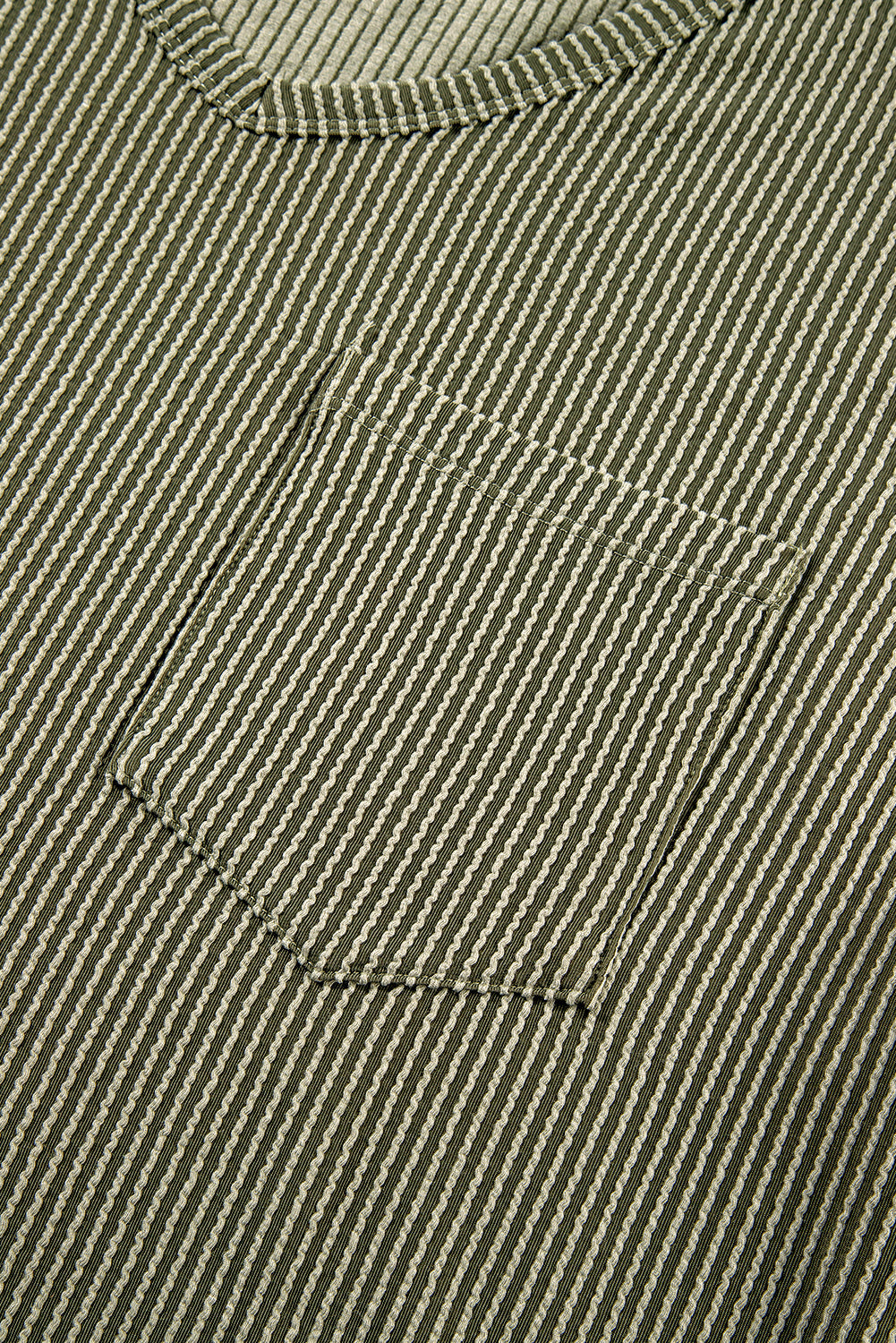 - Unique Design: Stand out in this ribbed fabric tee featuring a stylish patch pocket.