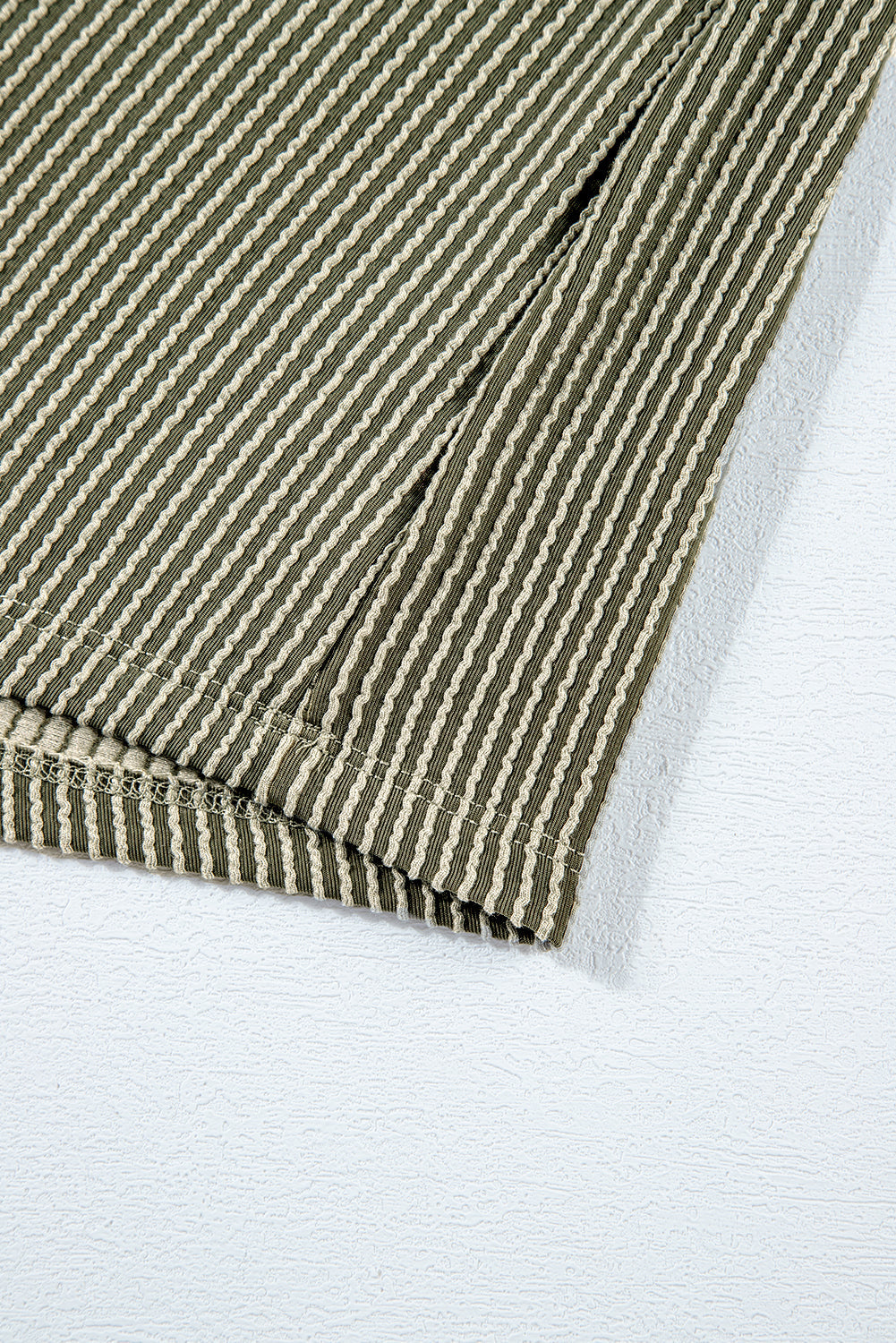 Meadow Mist Green Plus Size Corded V Neck Patch Pocket Tee