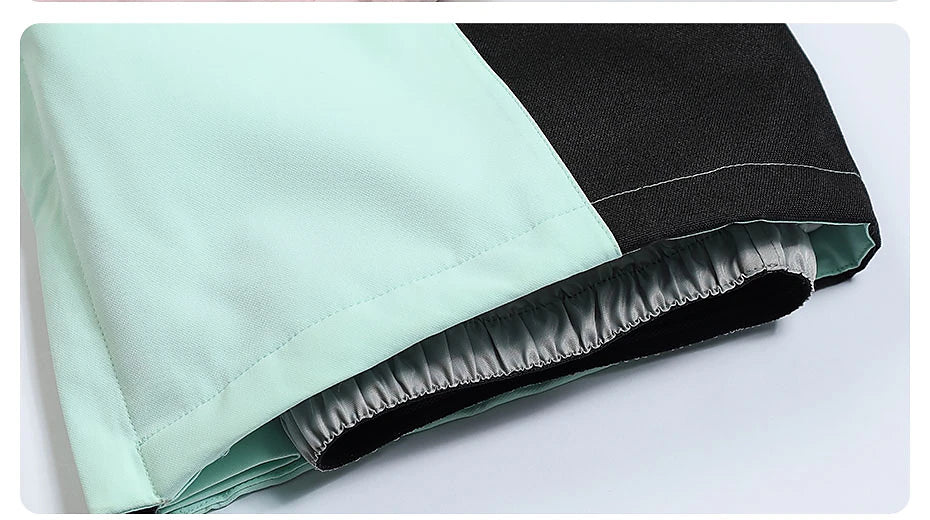 - Velcro cuffs and stretchable gloves with thumb holes help prevent snow and cold wind from entering the sleeves of the ski jacket.