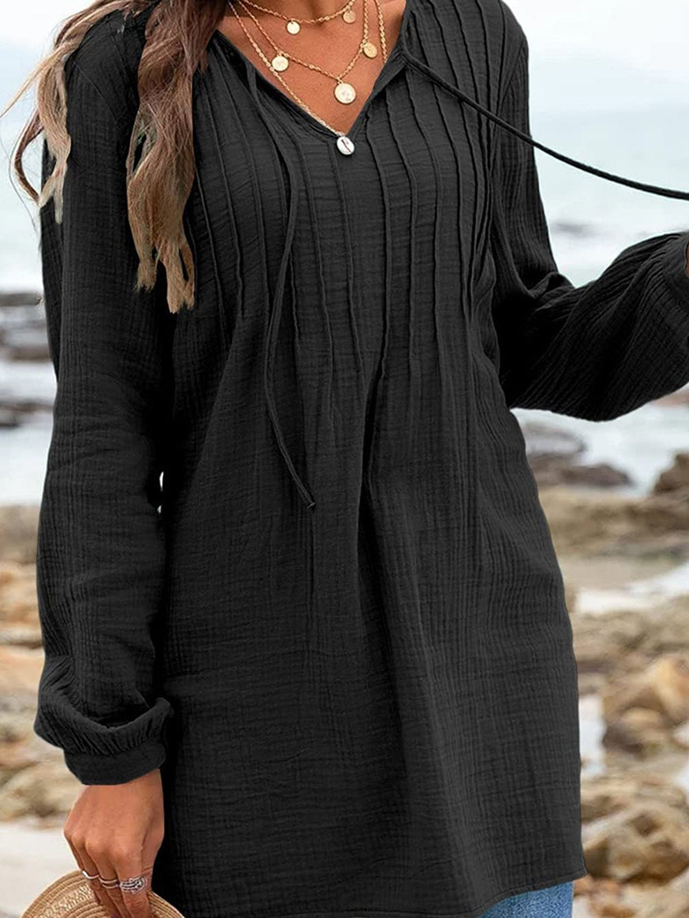 This V Neck Puff Short Sleeve Pleated Fashion Casual Tunic T-Shirt is a wardrobe essential for the modern woman who values both style and comfort. Elevate your look with this chic and versatile piece suitable for various occasions.