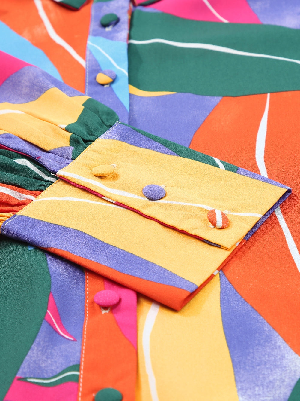 - Flattering Fit: Featuring a collared neck, puff sleeves with cuffs, buttoned front closure, and rounded hemline, this shirt offers a flattering fit for various body shapes.