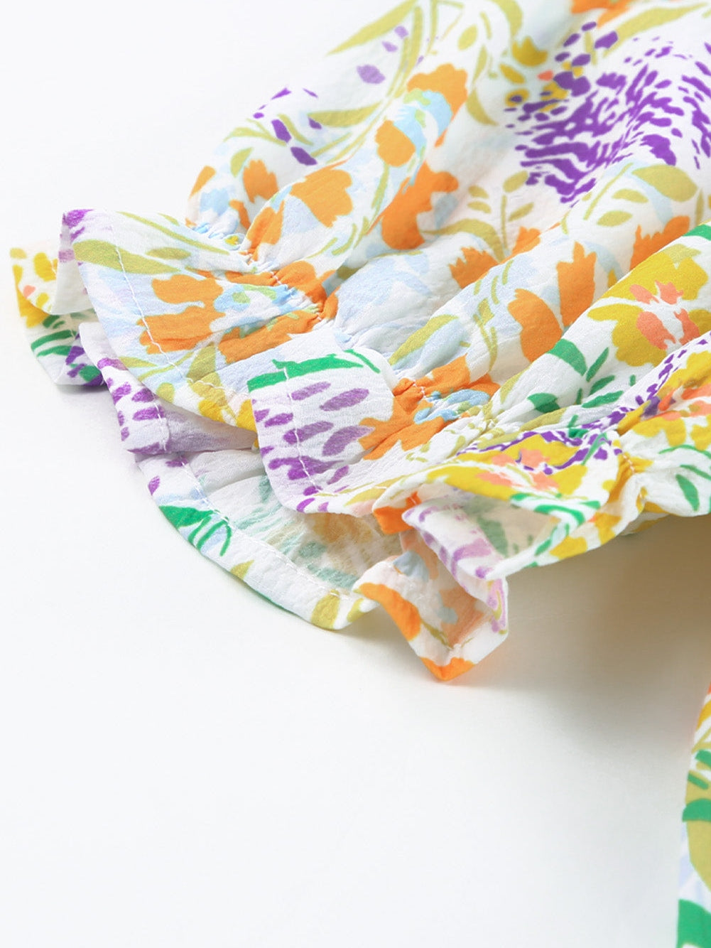 Upgrade Your Wardrobe with Our Multicolor Plus Size Floral Print Ruffle Bubble Sleeve Babydoll Dress