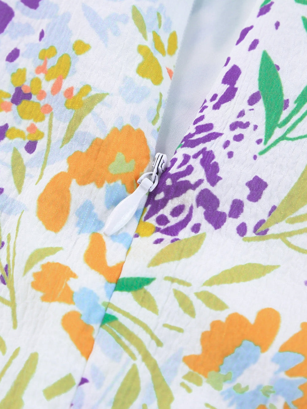 As you walk into a beautifully decorated ballroom filled with twinkling lights, your presence is instantly captivating in the floral print dress. The ruffle bubble sleeves elegantly sway with your movements, drawing attention to your graceful silhouette. The square neckline frames your face beautifully as you mingle with fellow guests. Paired with chic accessories and a pair of classic heels, you complete your look while feeling confident and comfortable. The dress allows you to dance the night away without any discomfort, making it an ideal choice for a formal gala.
