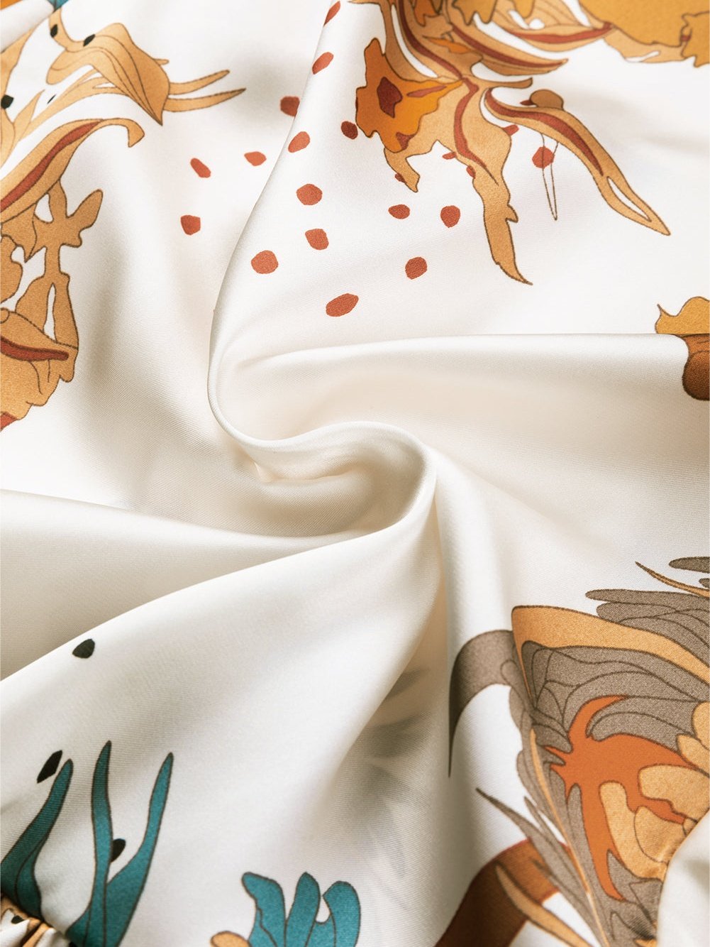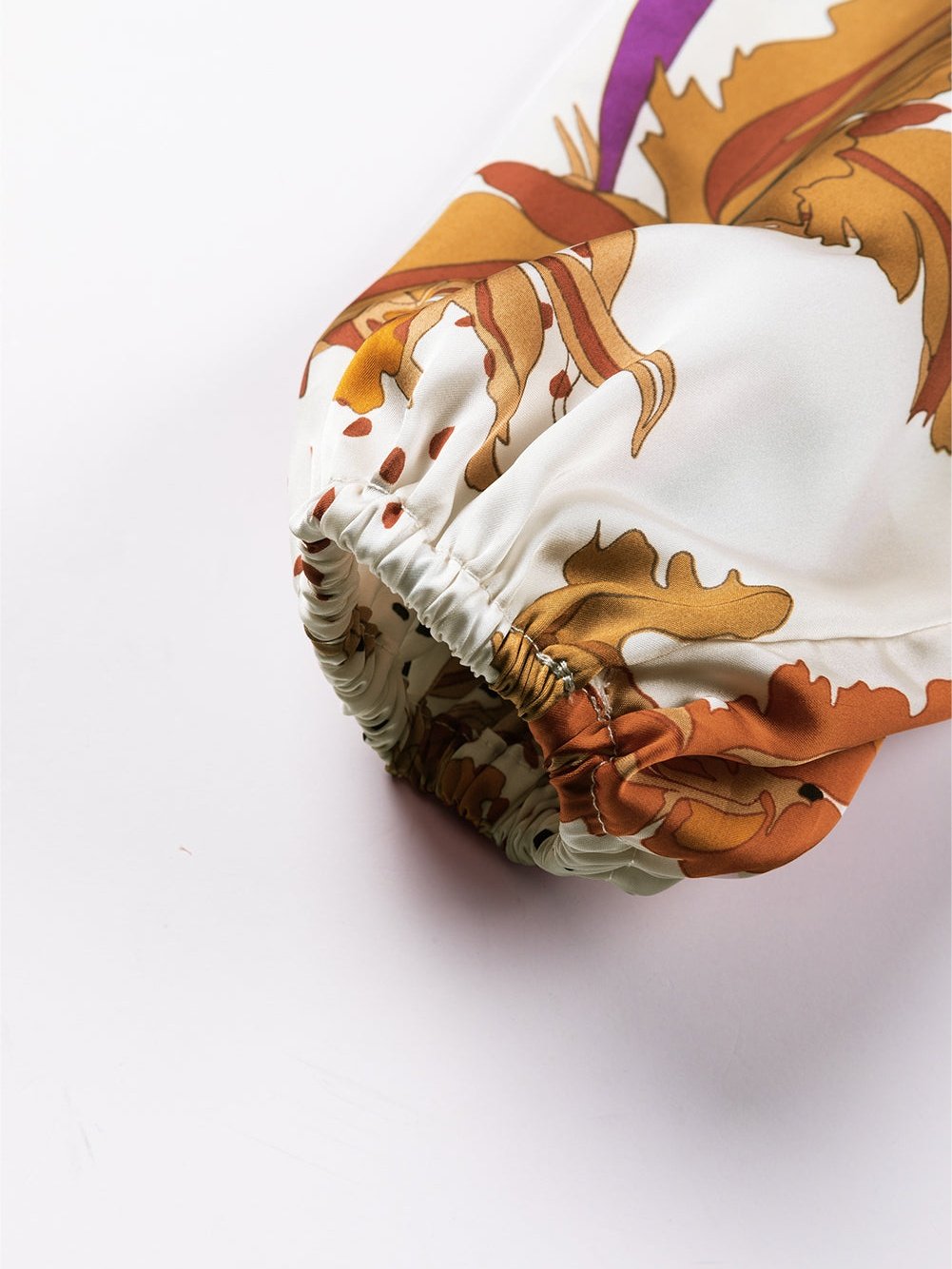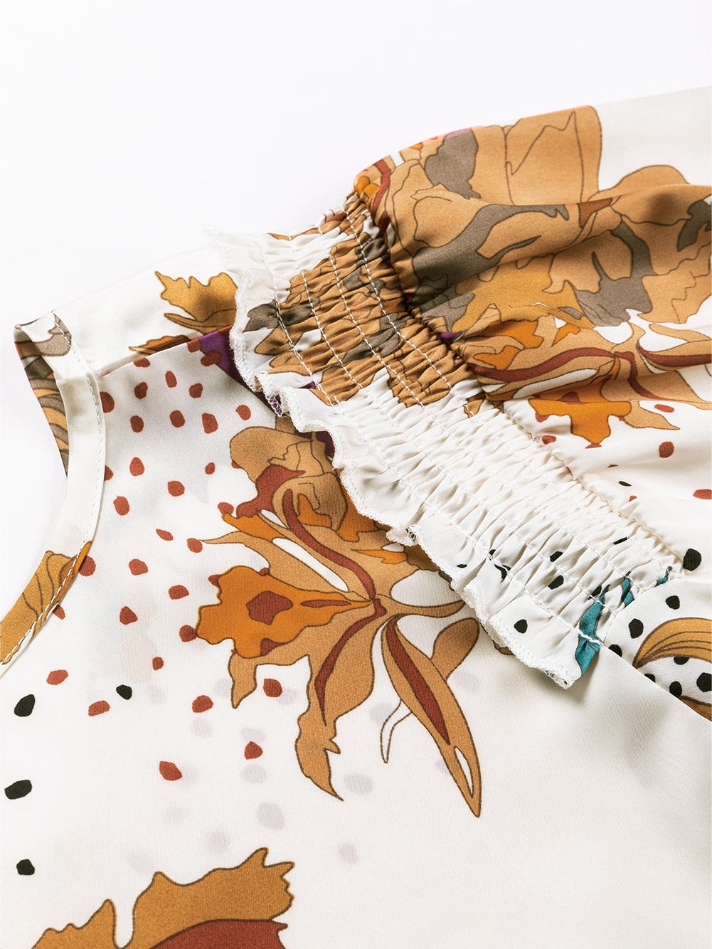 The V-neckline beautifully frames the face and elongates the neck, adding a touch of elegance to your look. Whether it's for work or play, this printed blouse is versatile and can seamlessly transition from day to night.