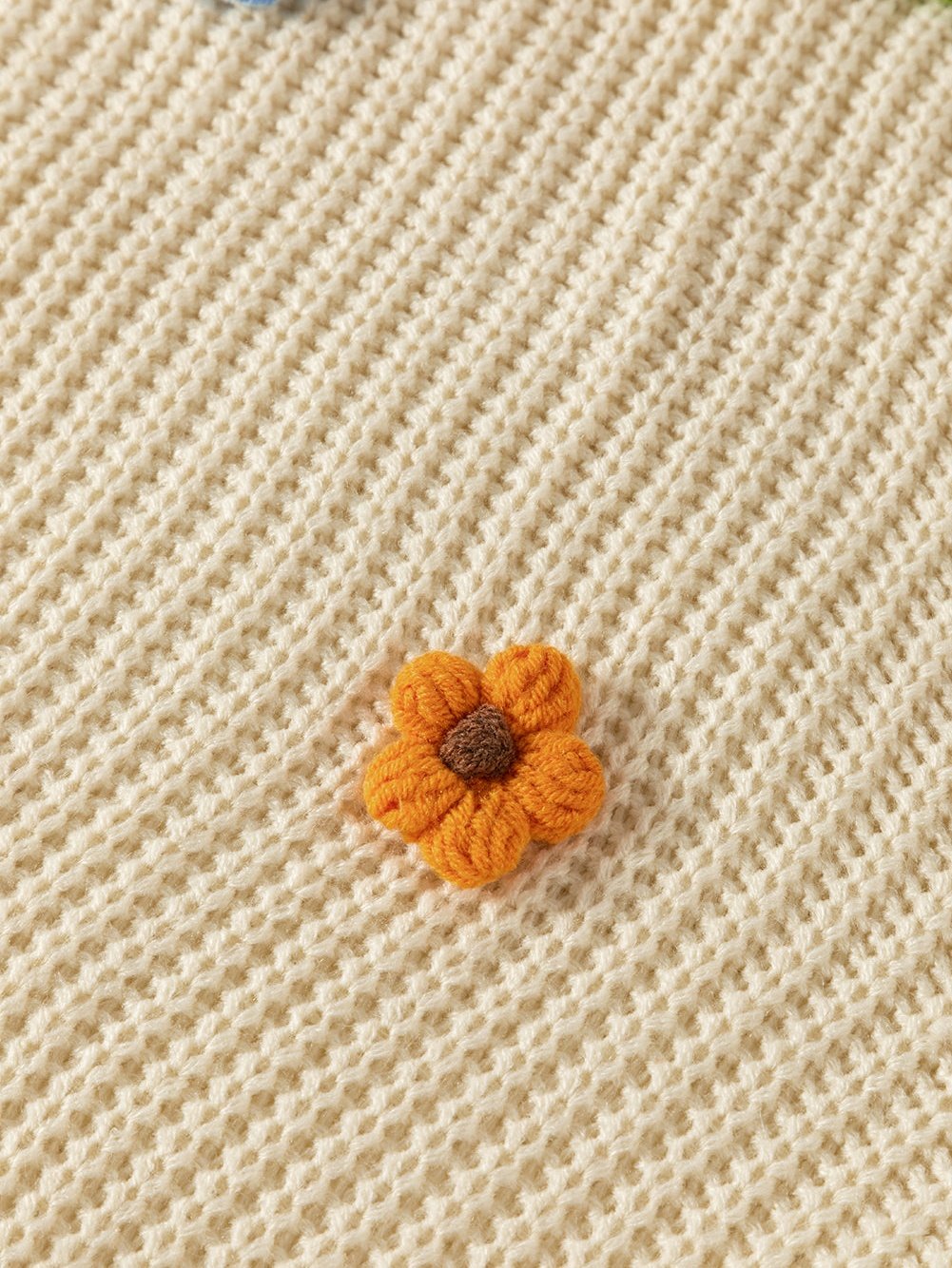 - Details: Decoration Detail - The flower applique design makes this sweater sweet and graceful. This crew neck sweater is popular with a color block silhouette. The drop shoulder adds extra style and makes it more casual. Our knit sweaters are suitable for different ages with various styles. Wholesale women sweaters for most with different sizes and abundant styles to choose from.