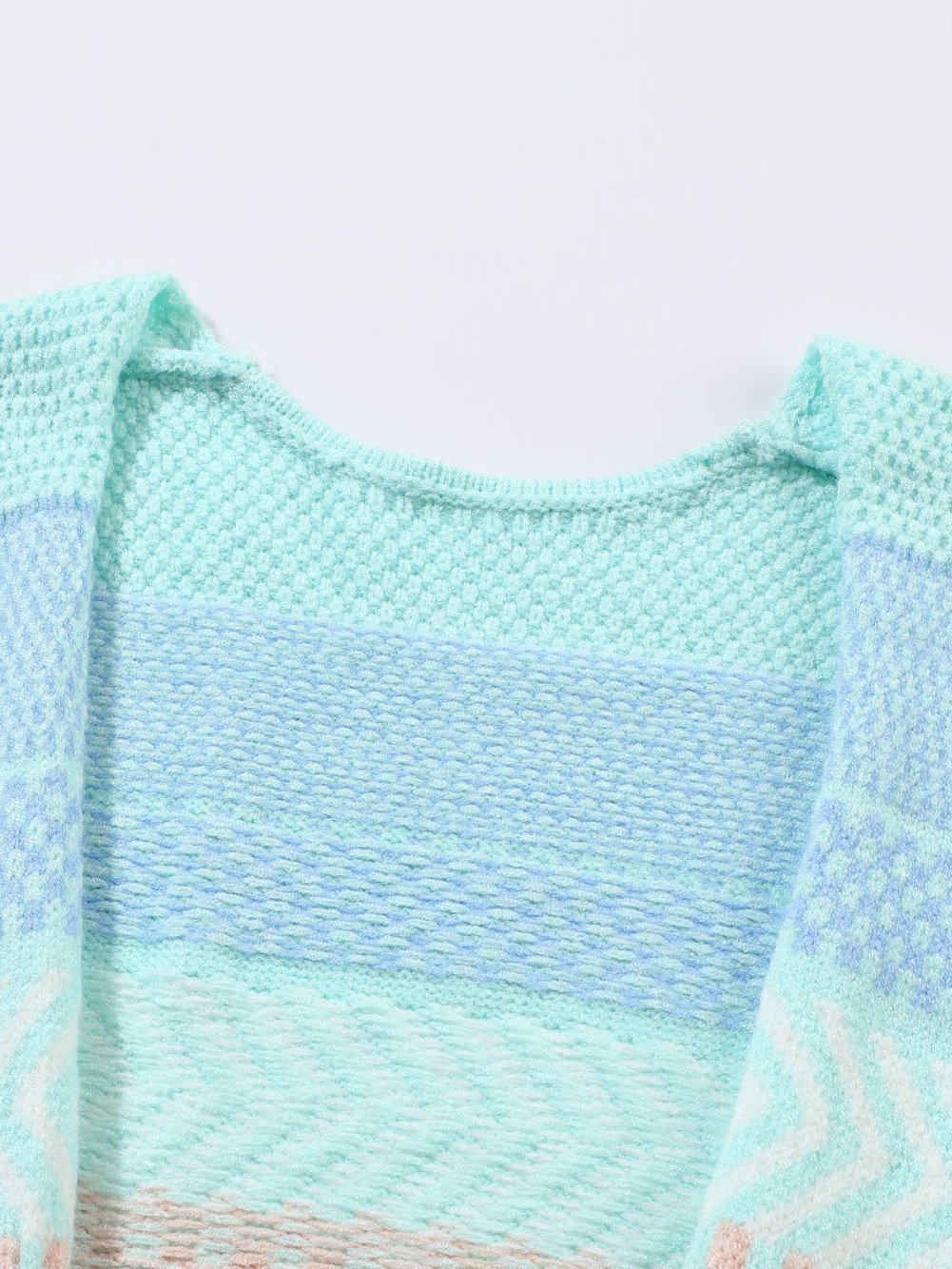 Elegant Multicolored Striped Knit Open-Front Sweater Coat