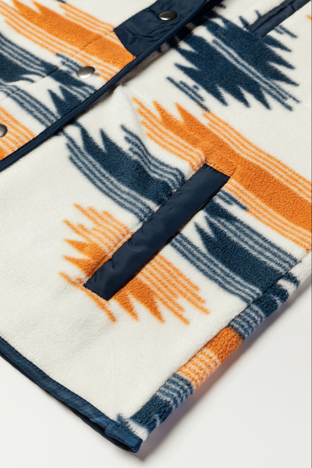 Multicolour Western Aztec Snap Buttoned Fleece Jacket