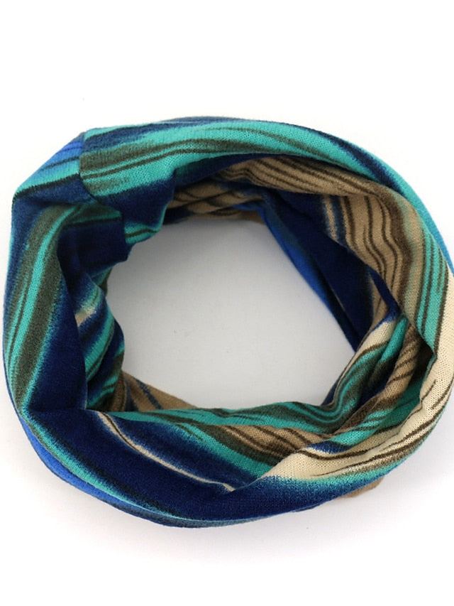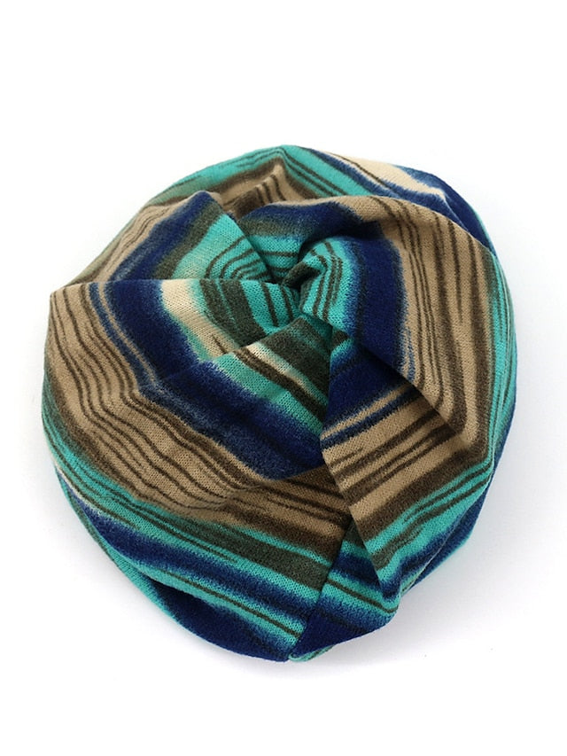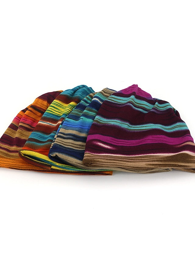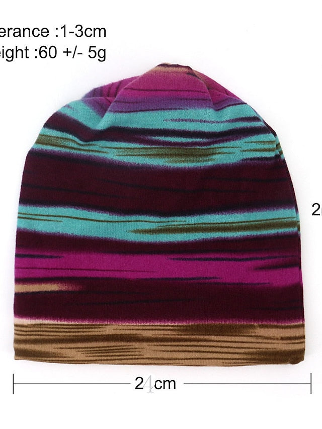 New Unisex Stripe Print Beanie Hat Women Soft Autumn Winter Warm Hat Scarf Casual Outdoor Hip Hop Cap