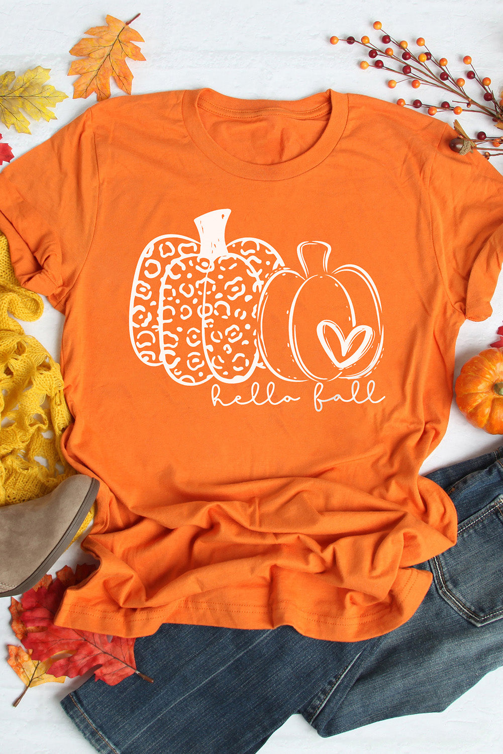 Embrace the Spirit of Fall with Our Orange Pumpkin Graphic Crew Neck T-shirt