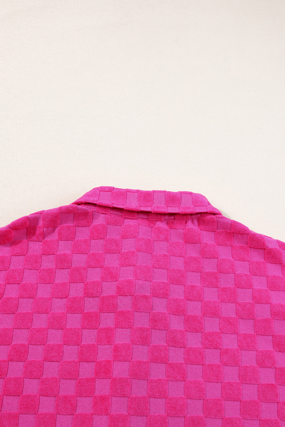 Upgrade Your Style with Peach Blossom Plus Size Checkered Terry Knit Short 2pcs Outfit
