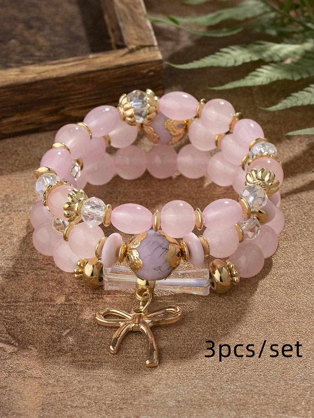 Pink 3pcs Bowknot Pendant Beaded Bracelet