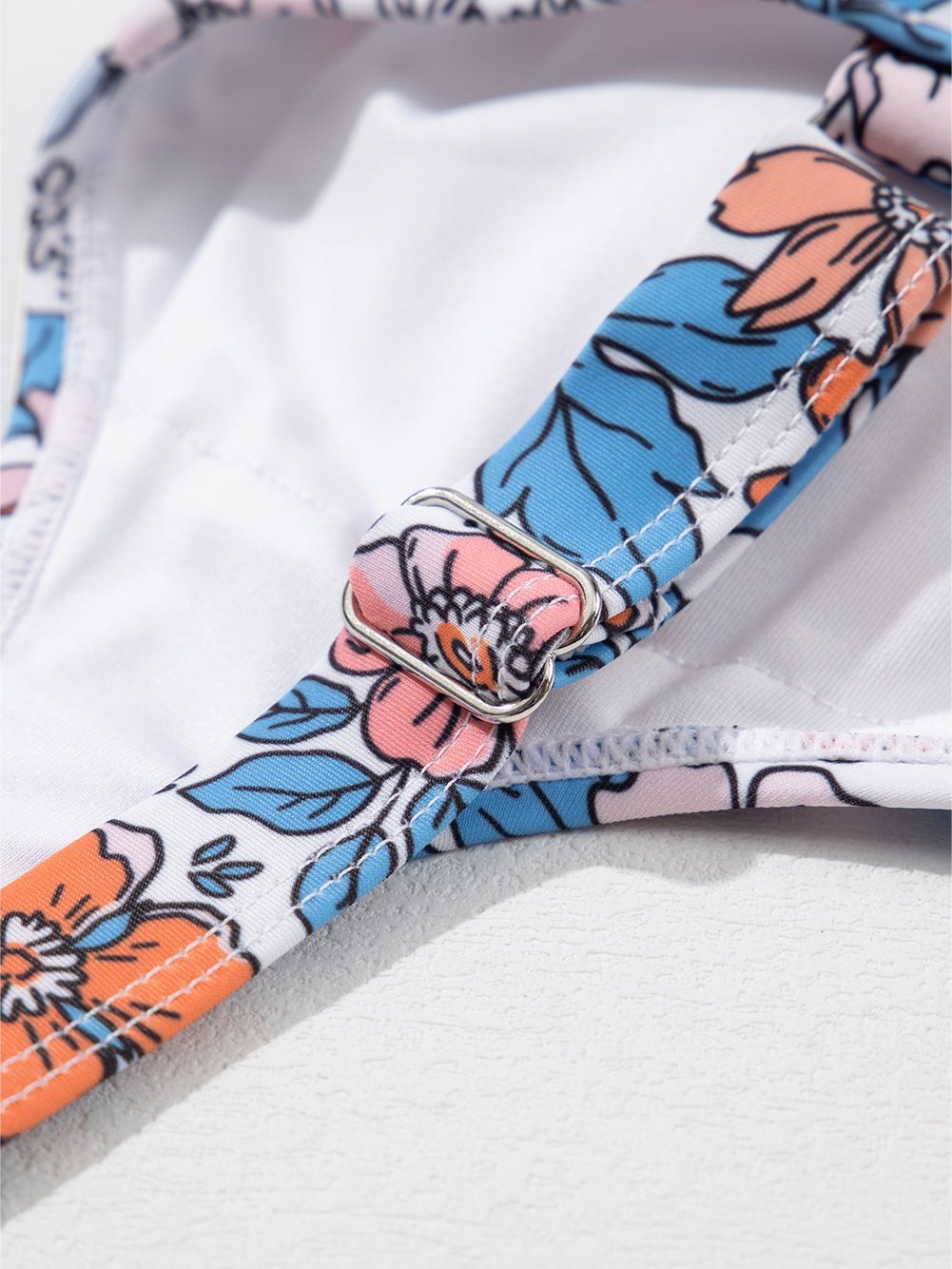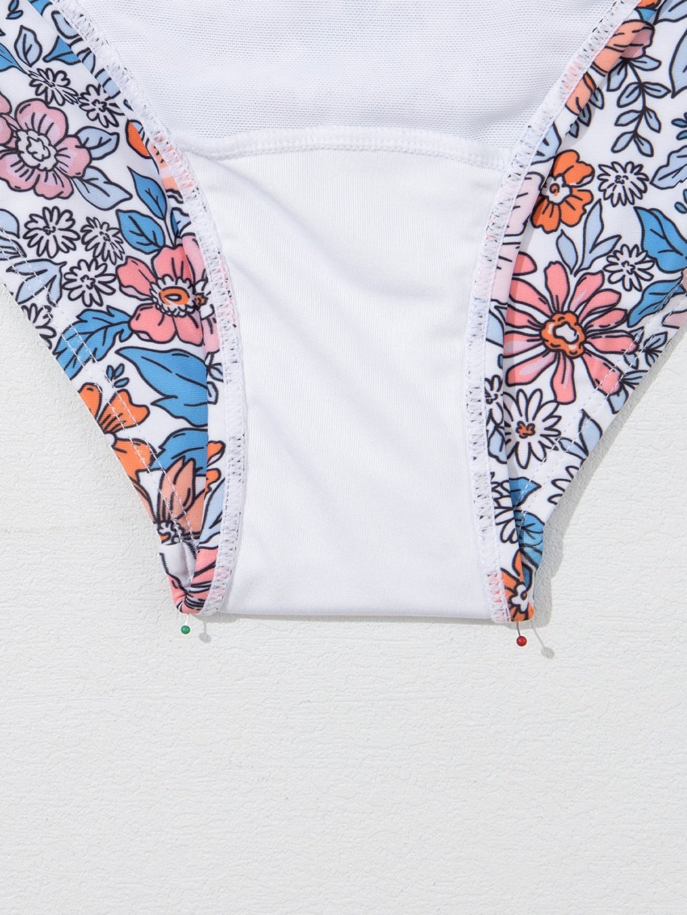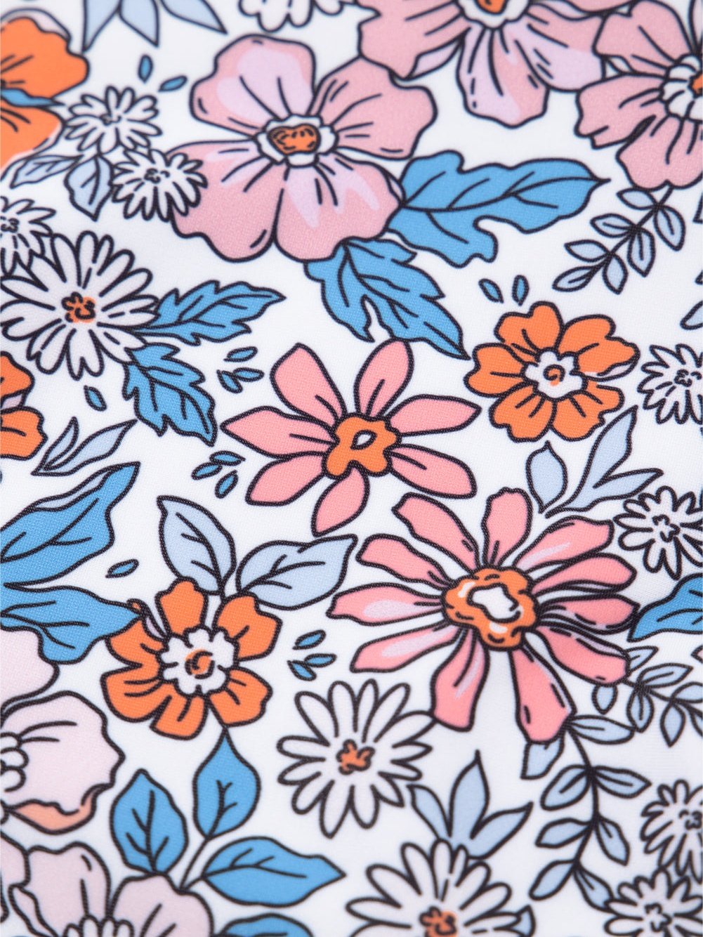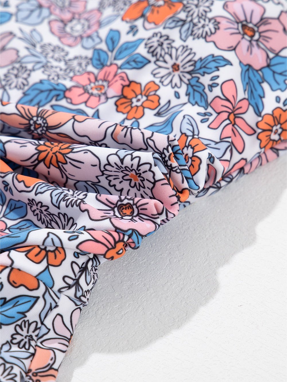 Elegant Pink Floral Drawstring Ruched Beach Swim Dress