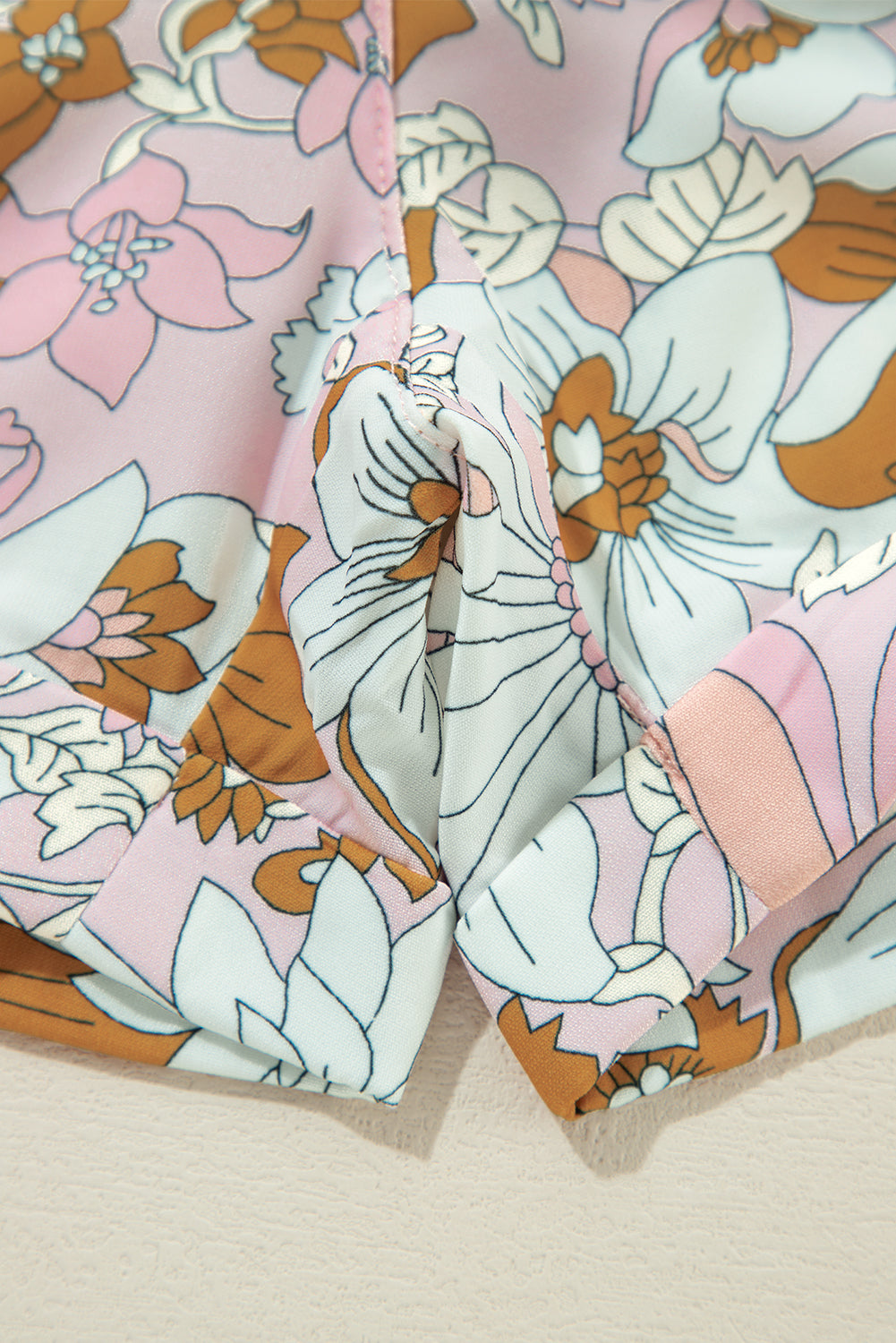 Elevate Your Summer Wardrobe with Our Pink Floral Short Sleeve Collared Button Front Romper