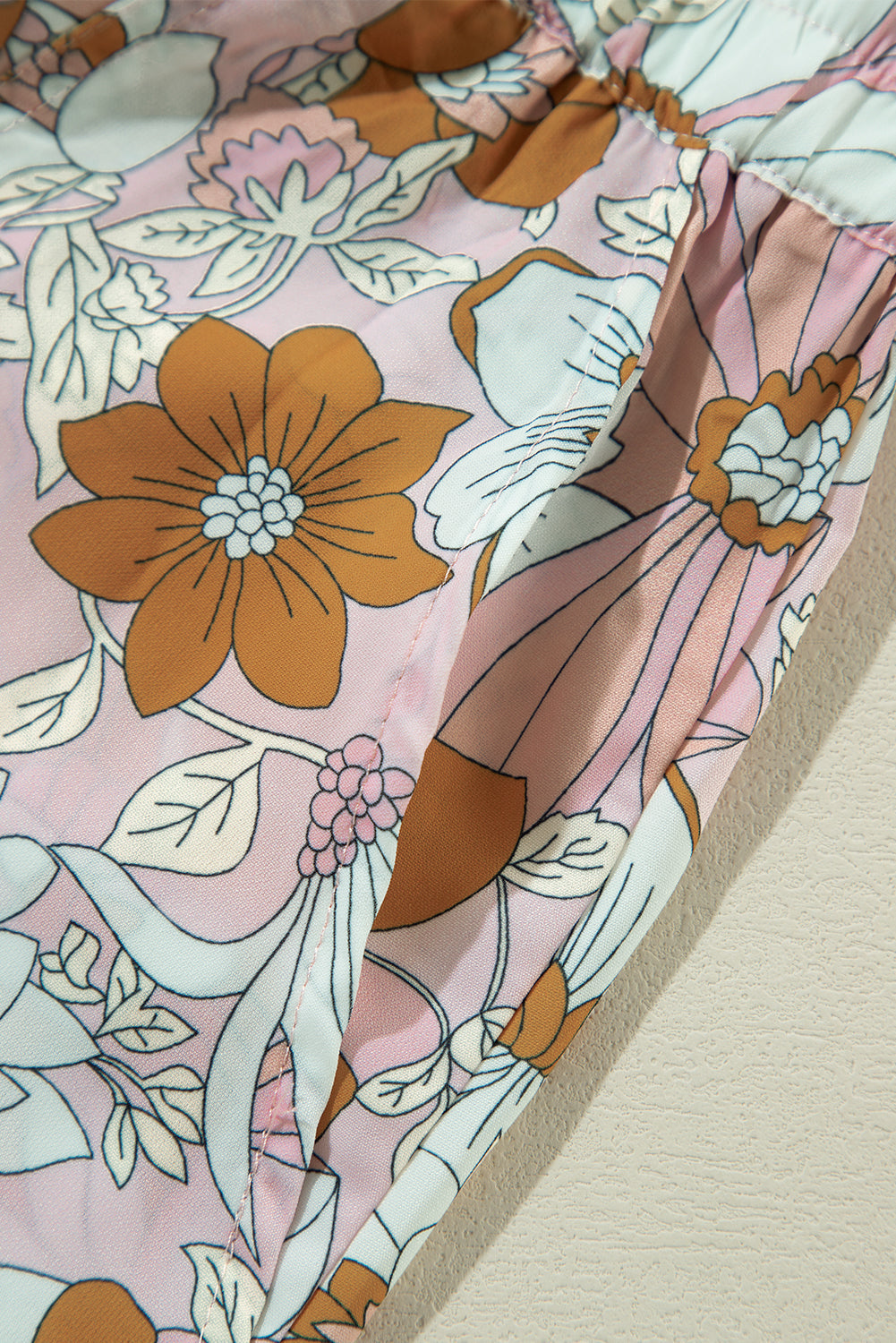 - Vibrant Floral Print: Adorned with a beautiful floral pattern, this romper brings a touch of nature’s beauty to your attire.