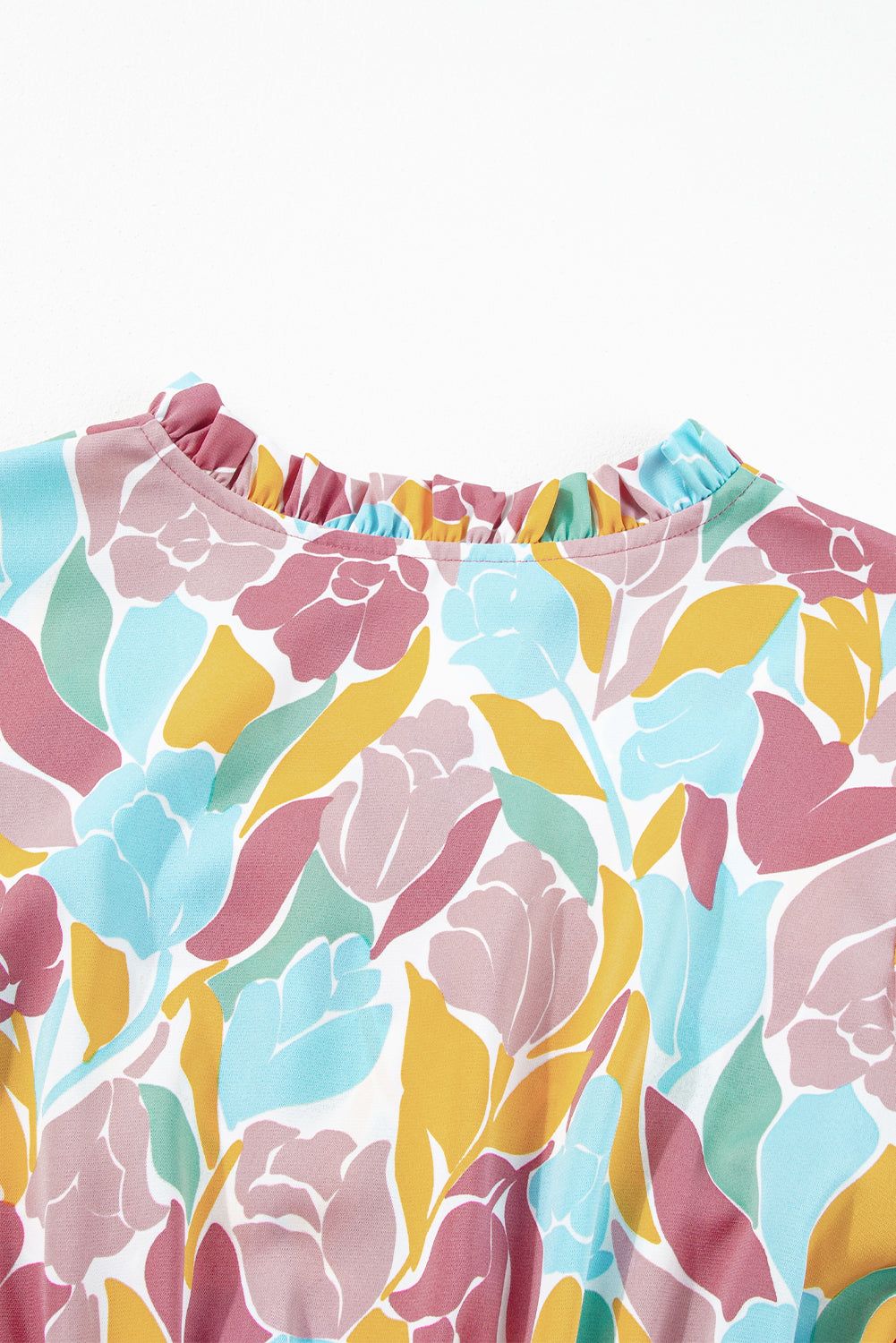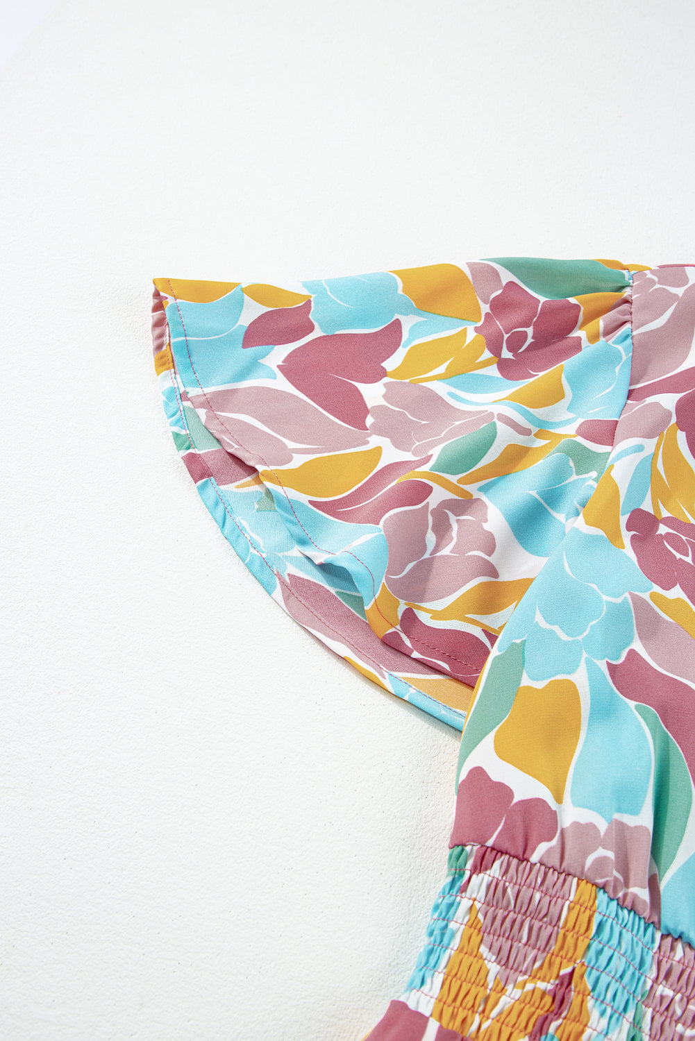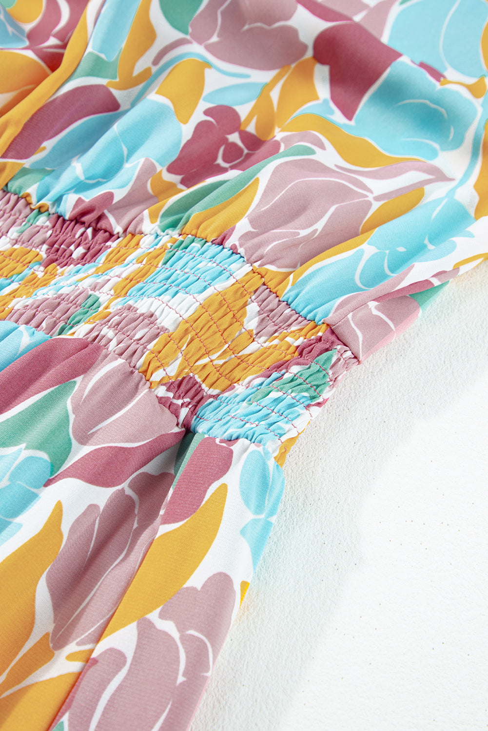 Pink Floral Short Sleeve Smocked Waist Maxi Dress