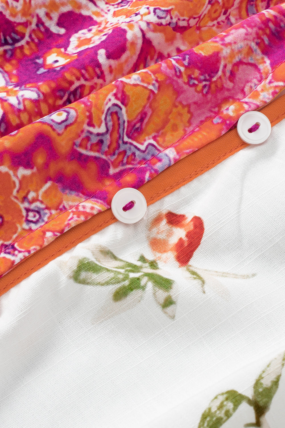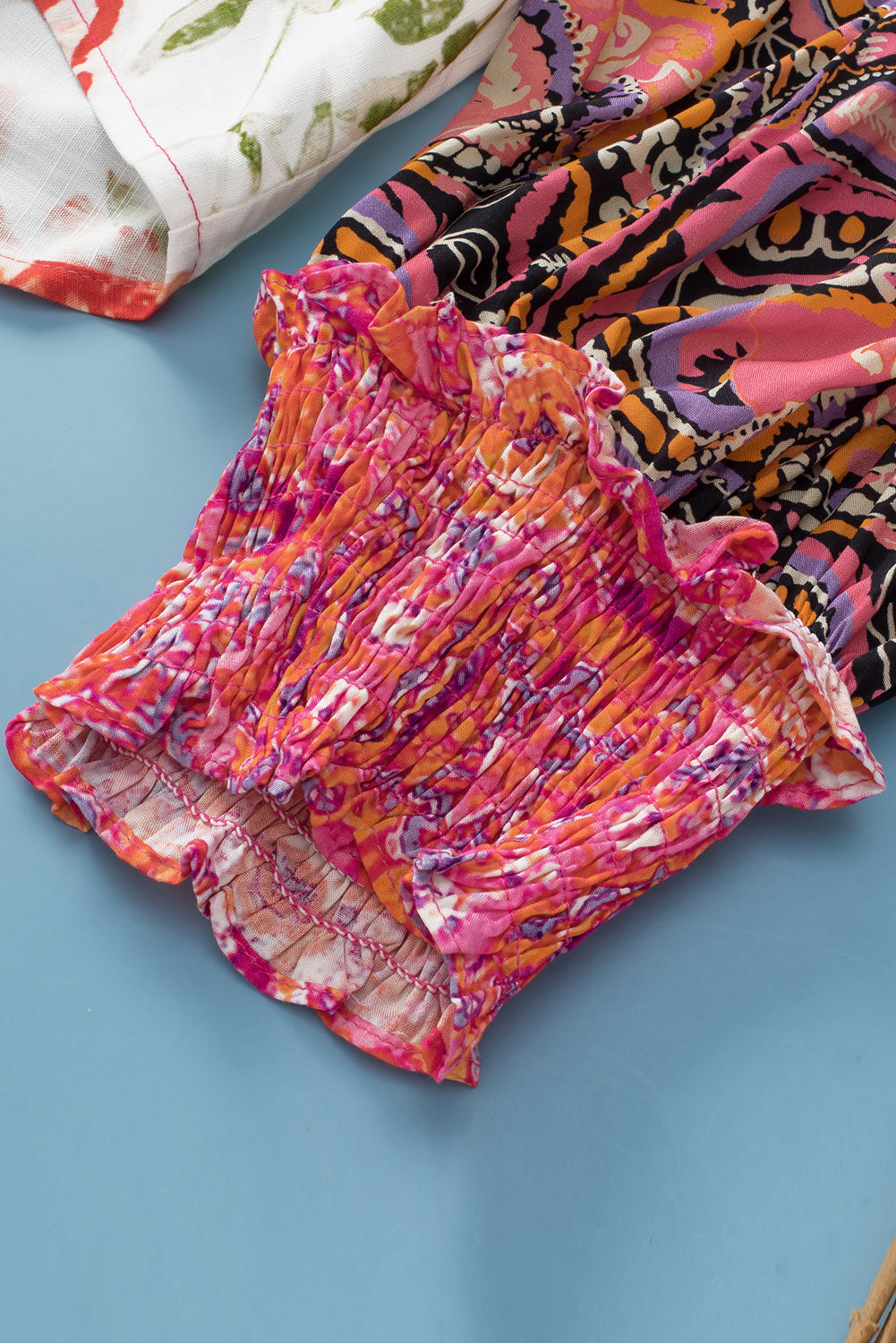 Elevate your wardrobe with our Pink Multicolor Floral Patchwork Shirred Cuffs Buttoned Blouse. Perfect for adding a pop of color and charm to your everyday look or stepping up your style game for a special occasion. Get yours today!