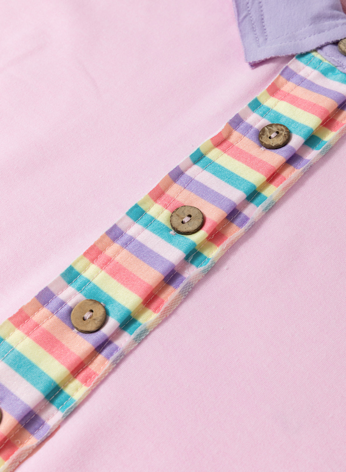 Pink Rainbow Stripe Half Sleeve Buttoned T Shirt Dress