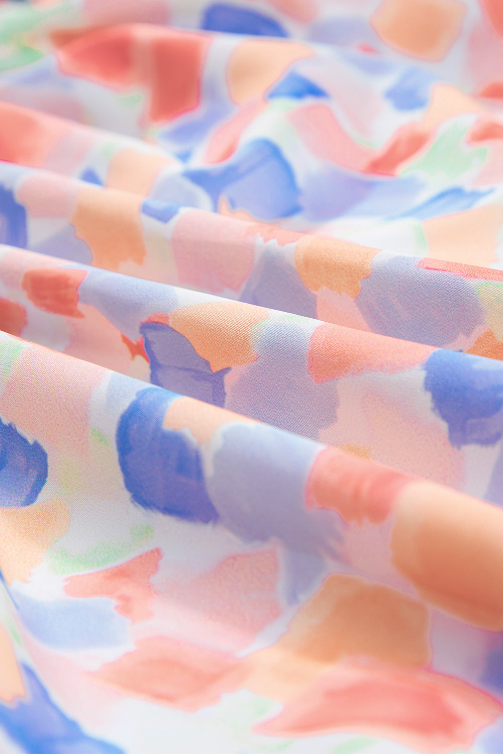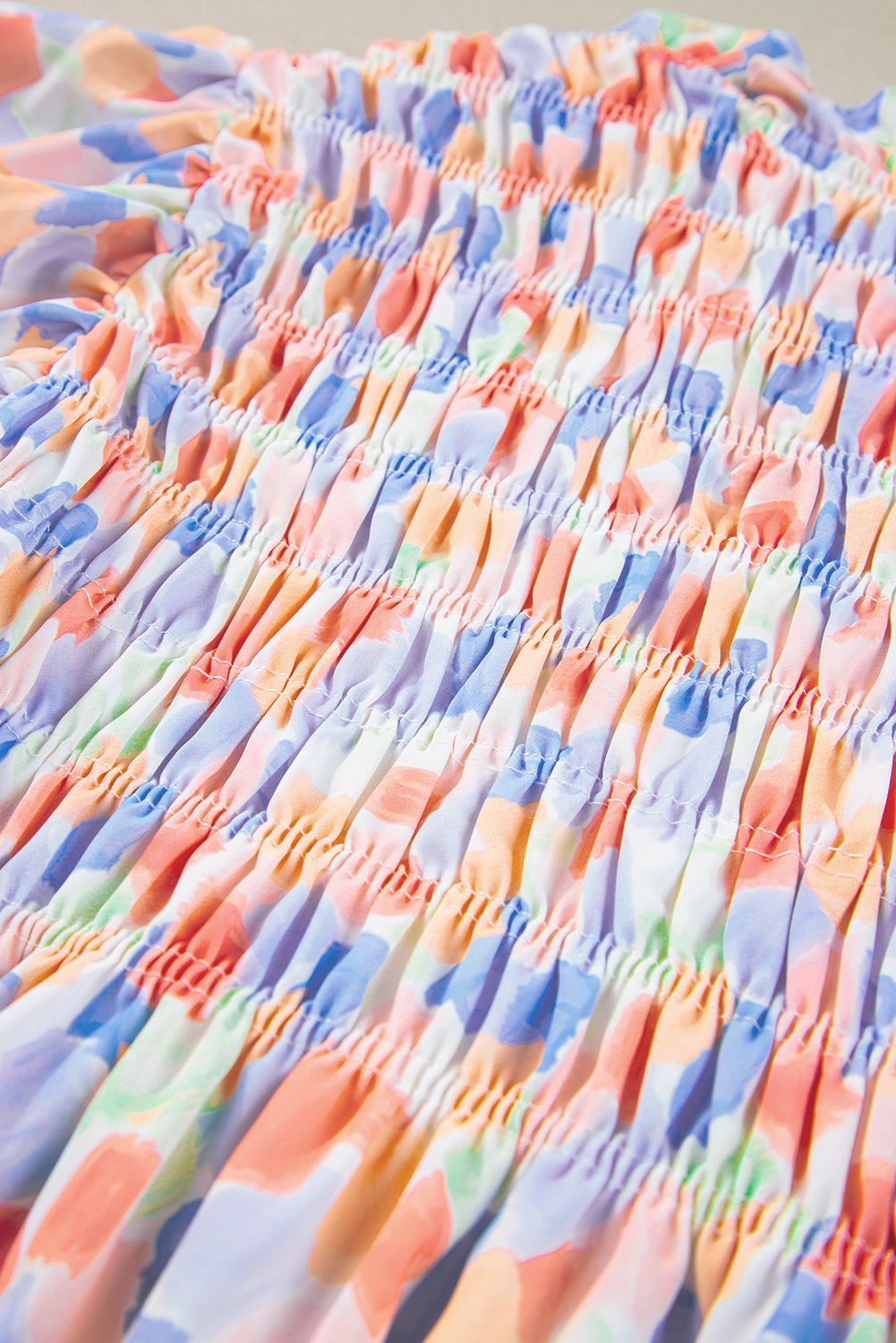 Pink Shirred Yoke Ruffled Abstract Printed Blouse