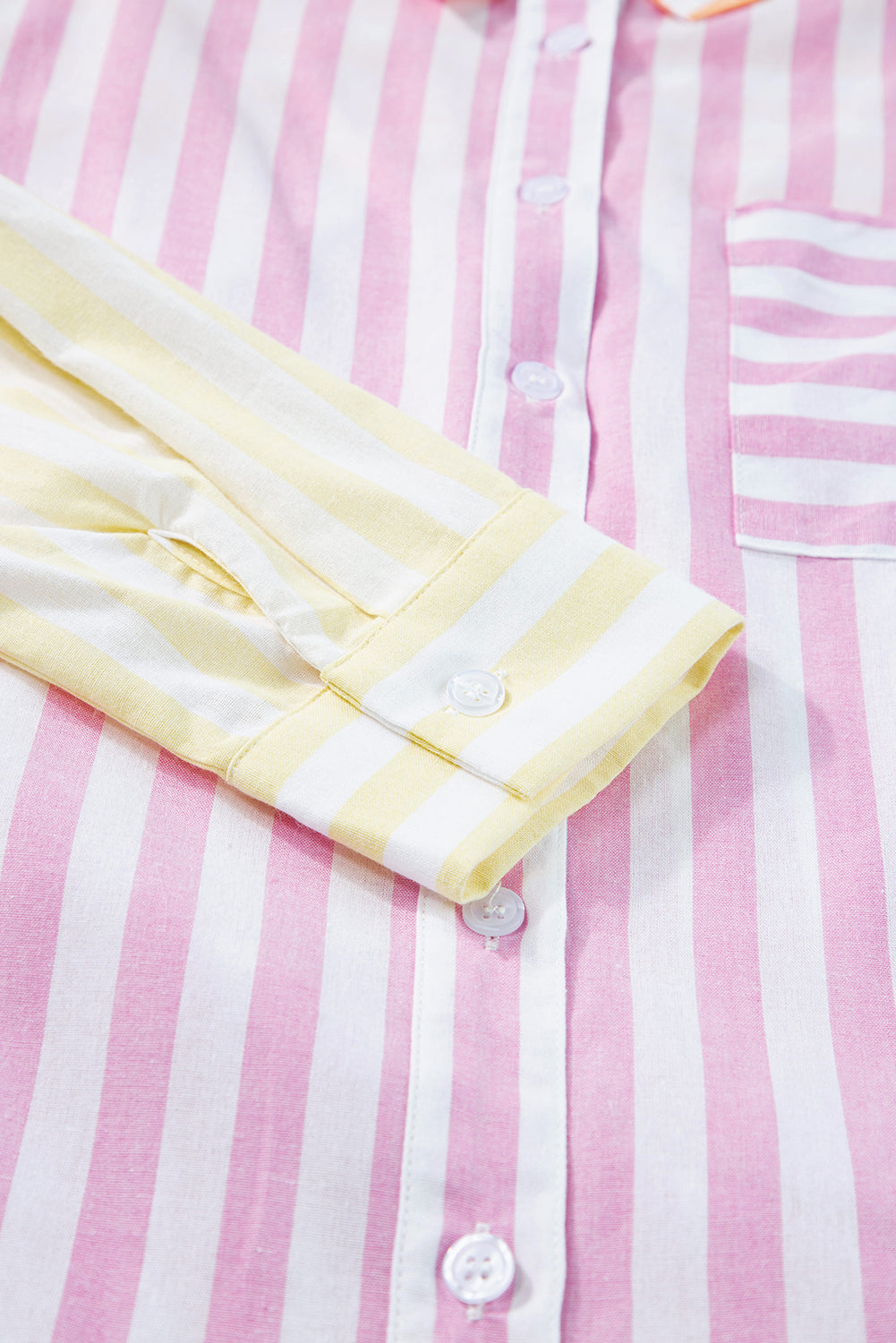 Elevate your wardrobe with our Pink Stripe Contrast Collar Long Sleeve Patchwork Shirt, a perfect blend of style and comfort. This shirt is designed for the modern woman who appreciates unique fashion statements.