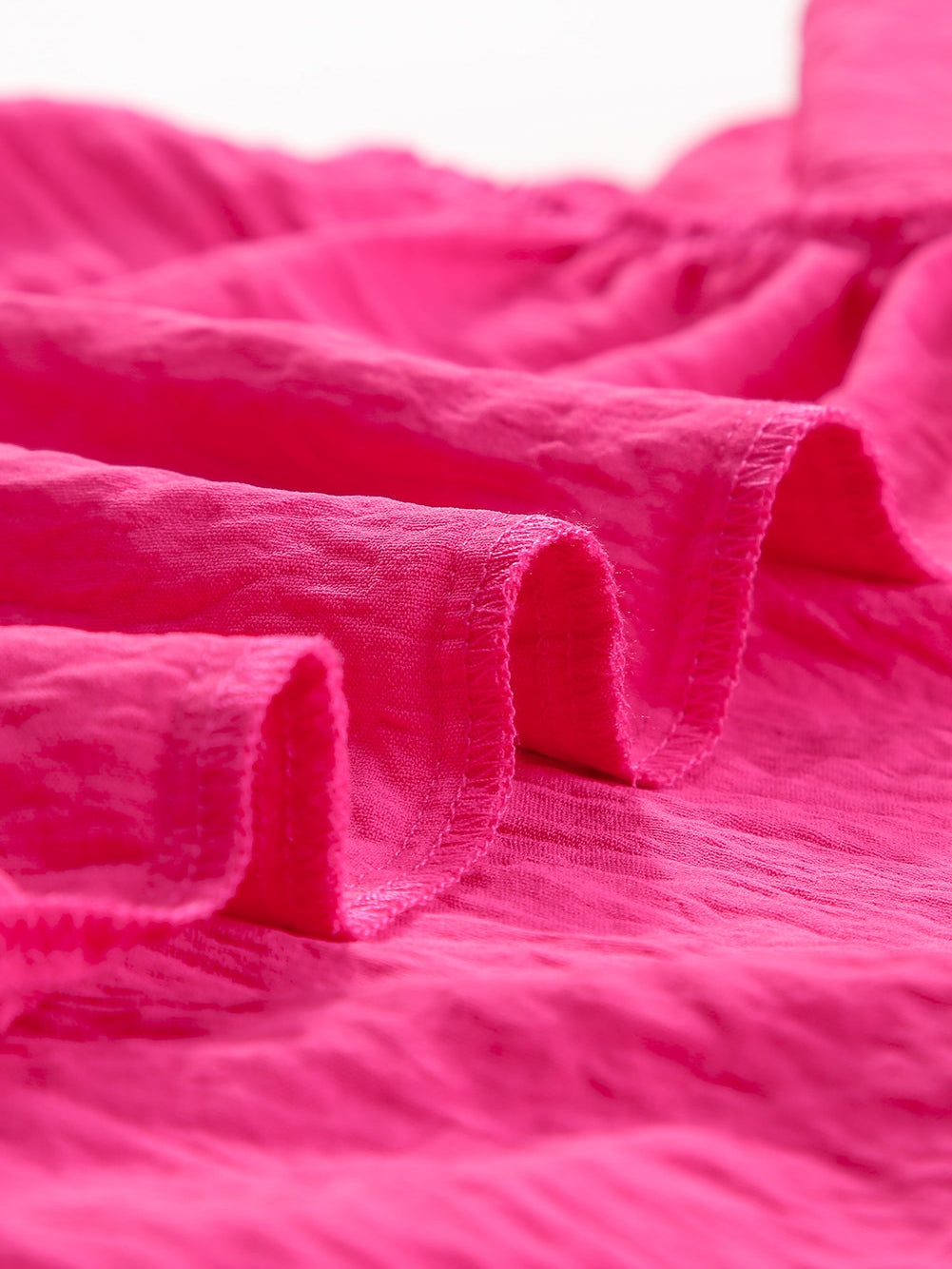 Pretty in Pink V-Neck Ruffle Tunic Top with Tie Back