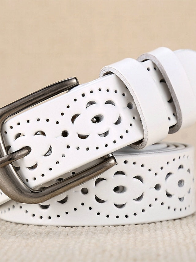 PU Buckle Belt PU Leather Metal Bucke Plain Cowboy Casual Work Daily Black White Wine Brown for Women