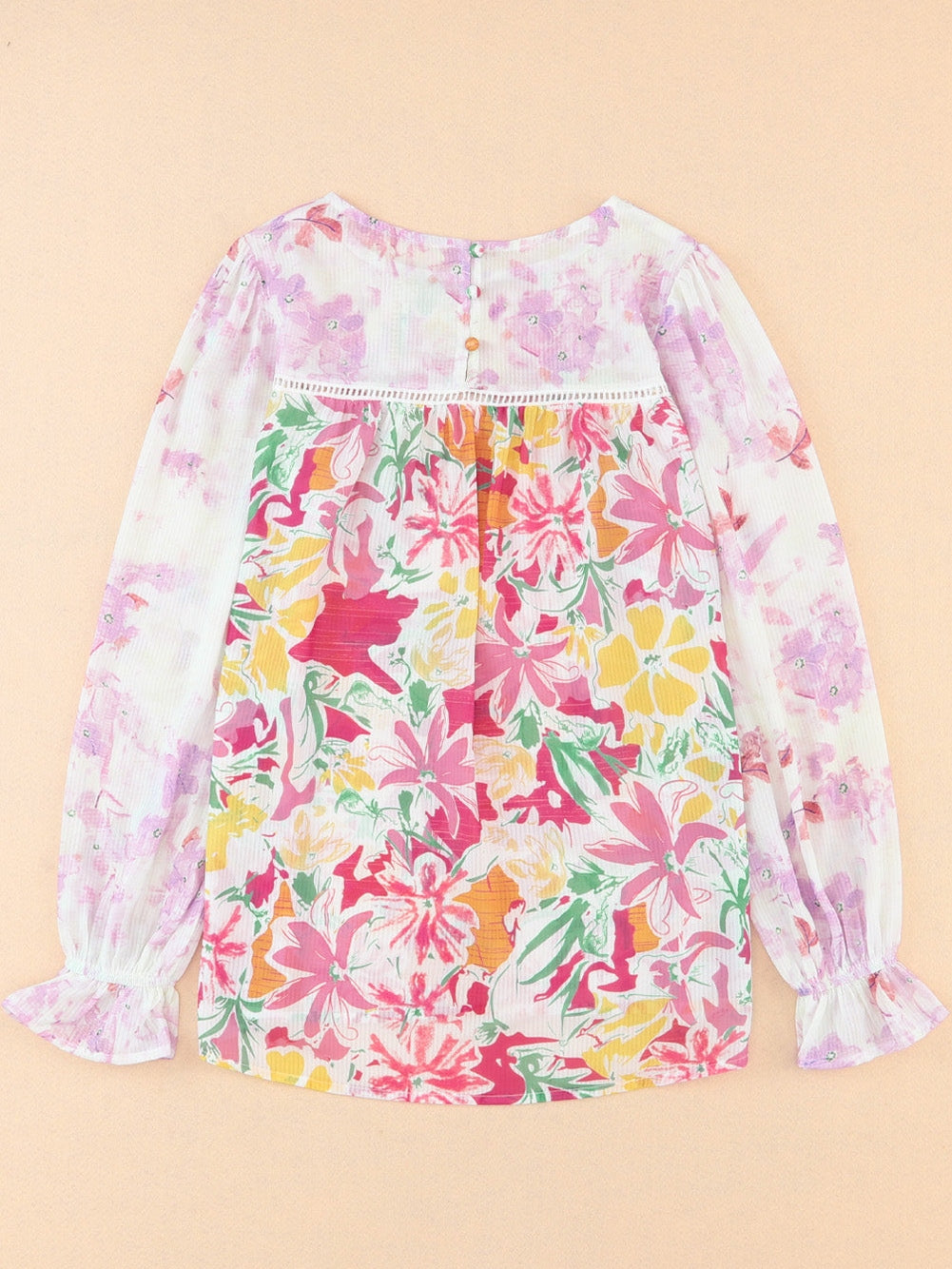 Purple Floral Patchwork Lace Trim Blouse