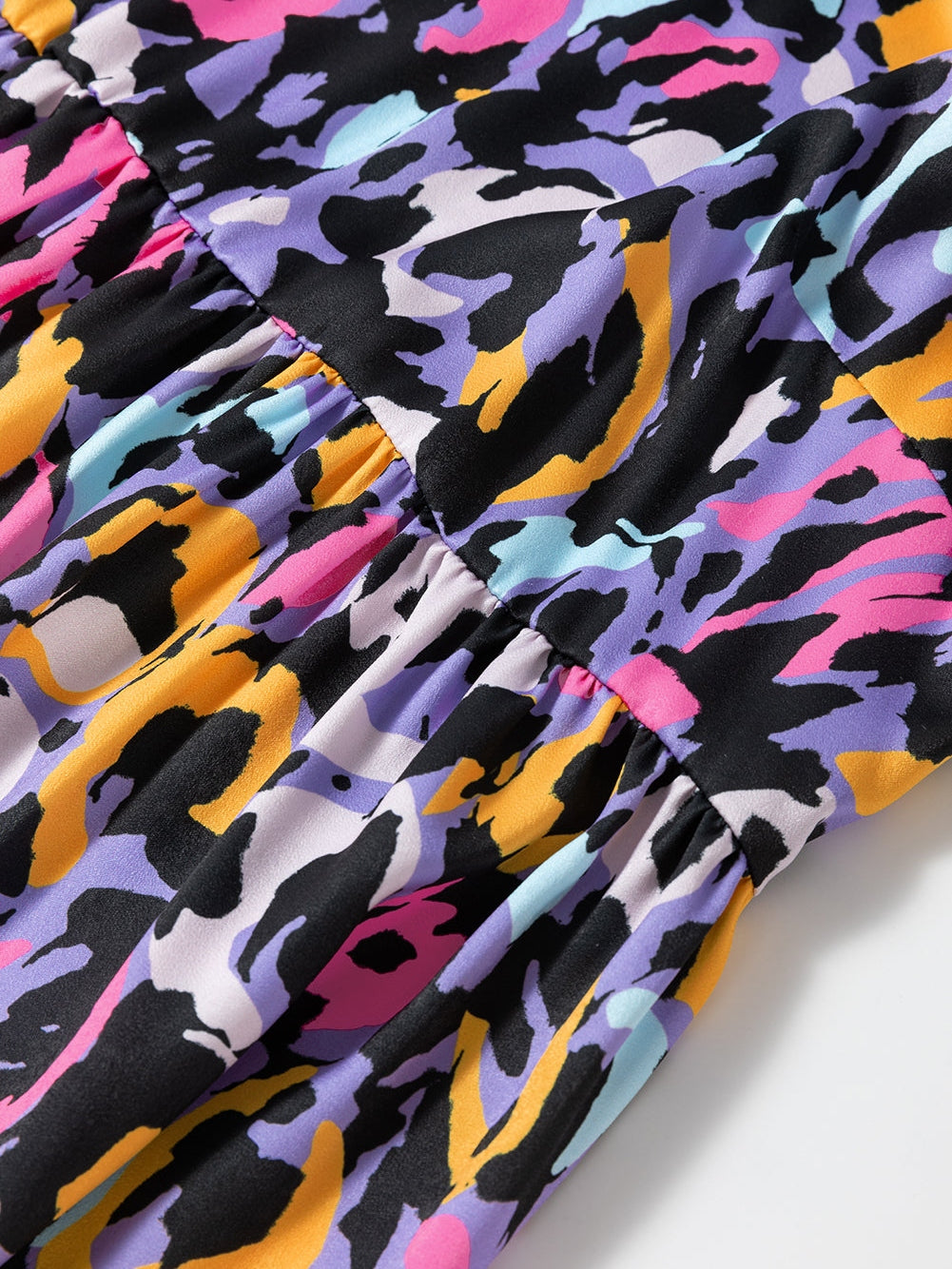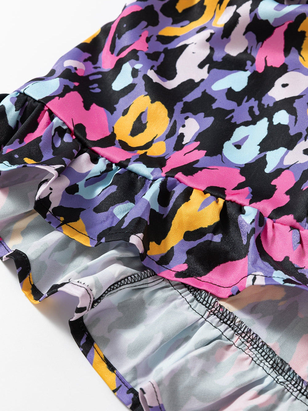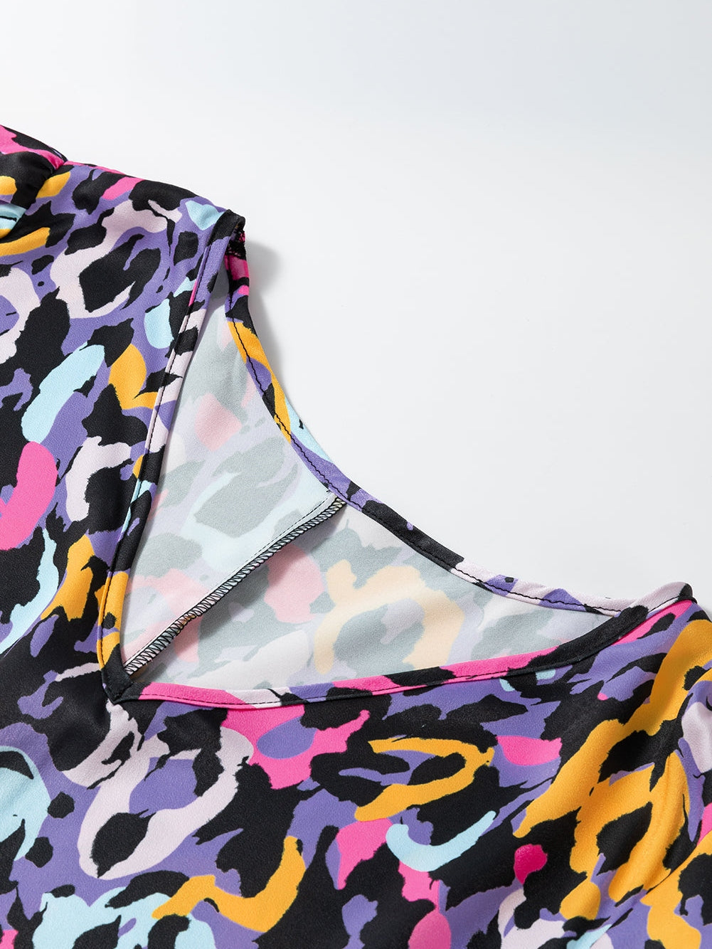Purple Leopard Print V-Neck Plus Size Mini Dress with Ruffle Detail