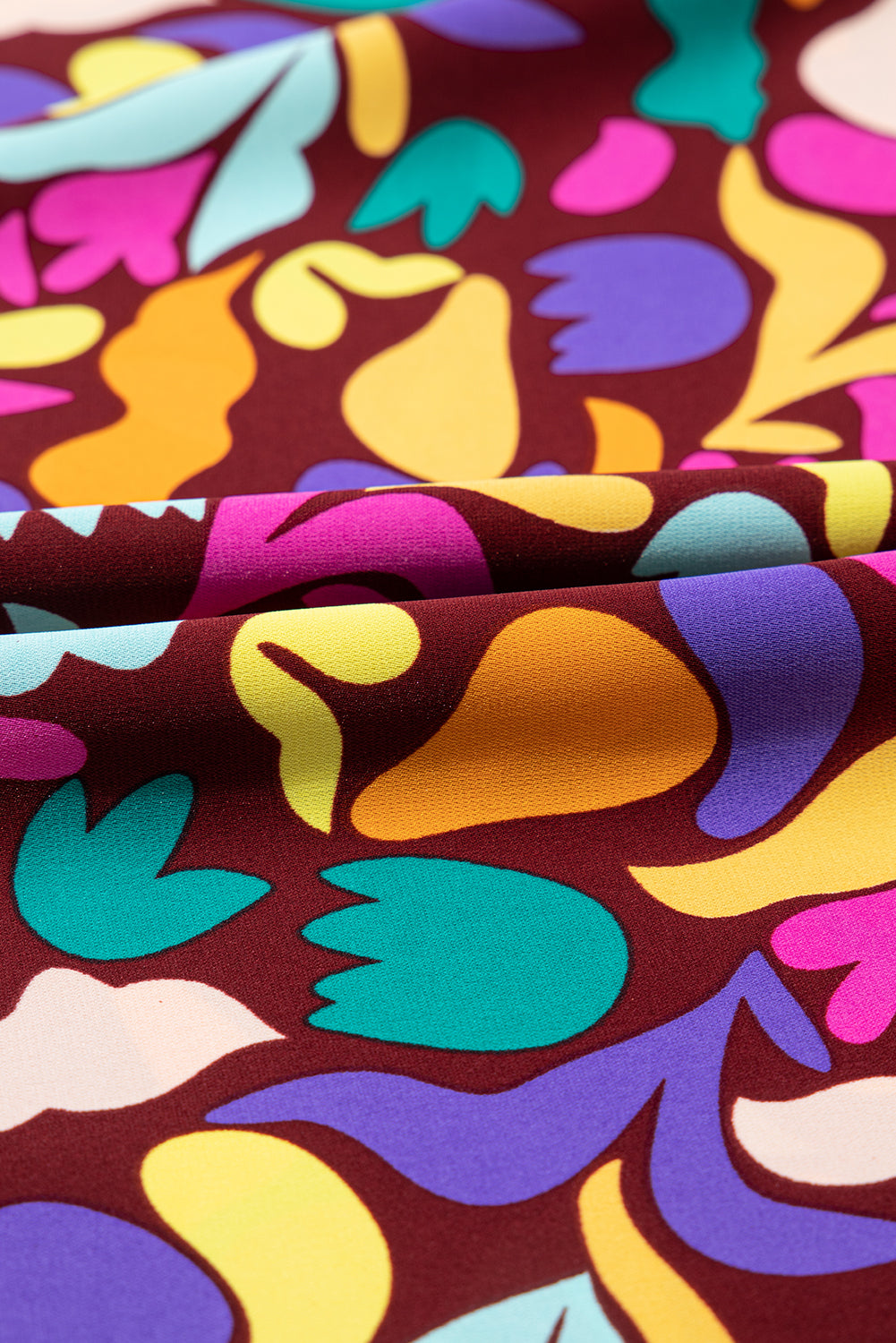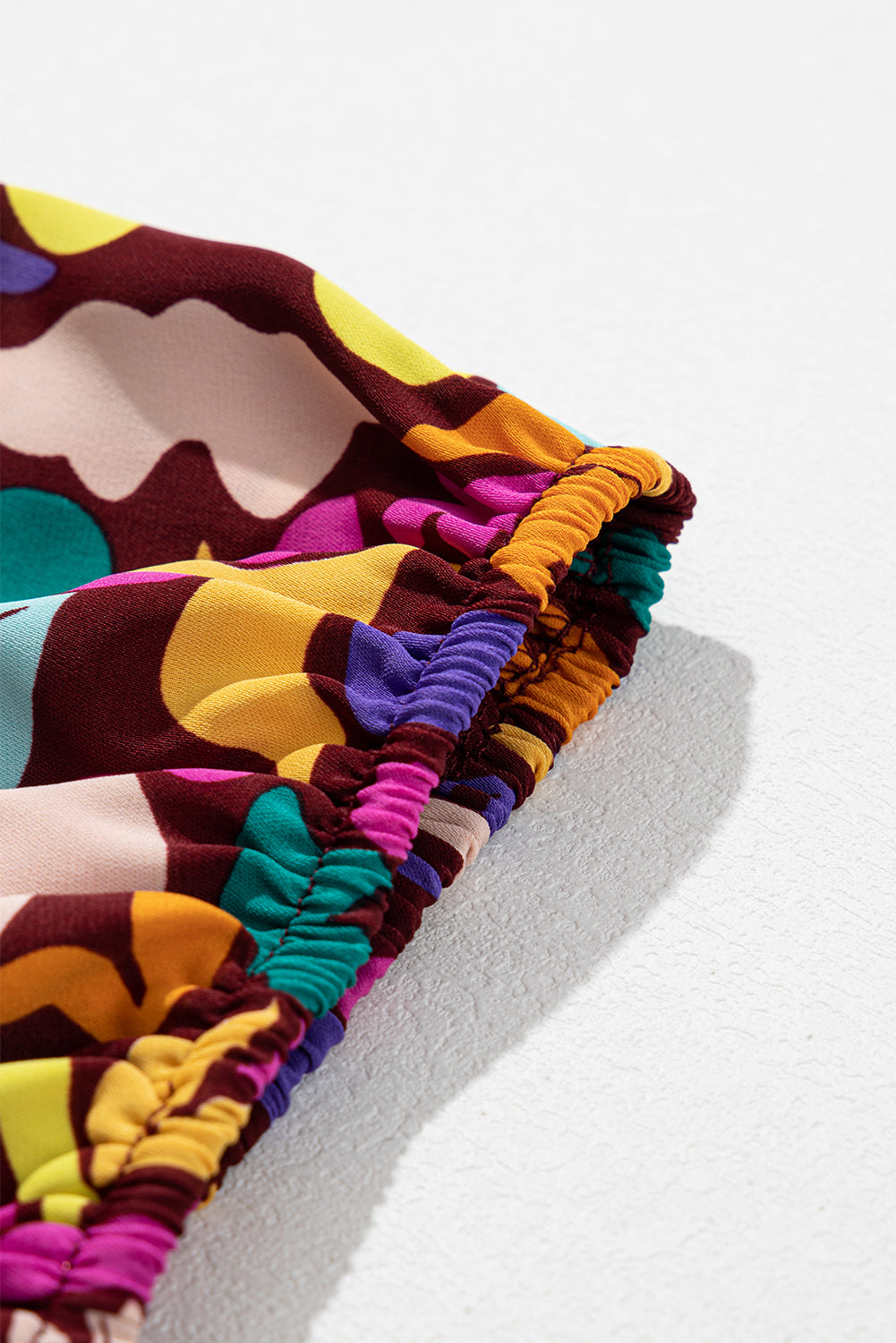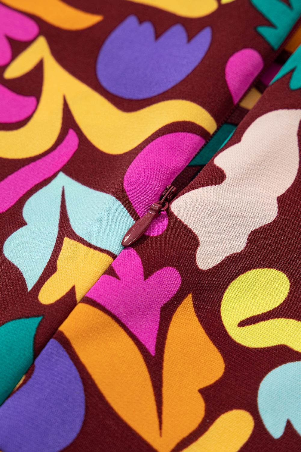 As you arrive at the charity gala dinner, the atmosphere buzzes with excitement. The venue is adorned with beautiful floral arrangements and ambient lighting. Your dress, with its captivating geometric and floral patterns, draws compliments from everyone you meet. The trendy puff sleeves and square neck design allow you to move gracefully as you mingle with guests. You feel empowered as you engage in meaningful conversations, knowing that your outfit perfectly encapsulates your personality and purpose.
