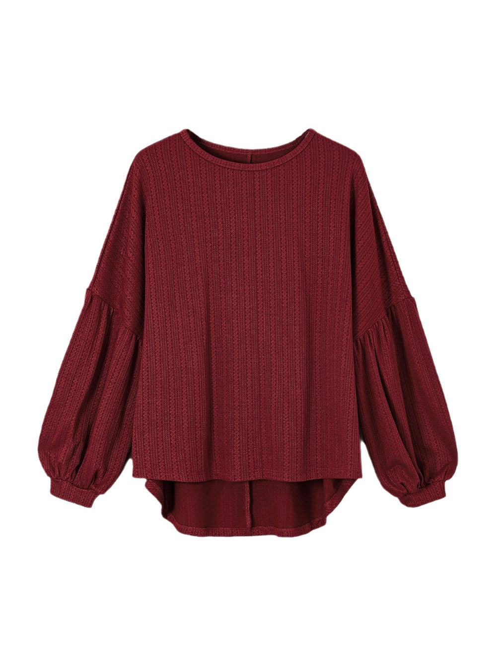 Crimson Dahlia Plus Size Jacquard Knit Bubble Sleeve Top