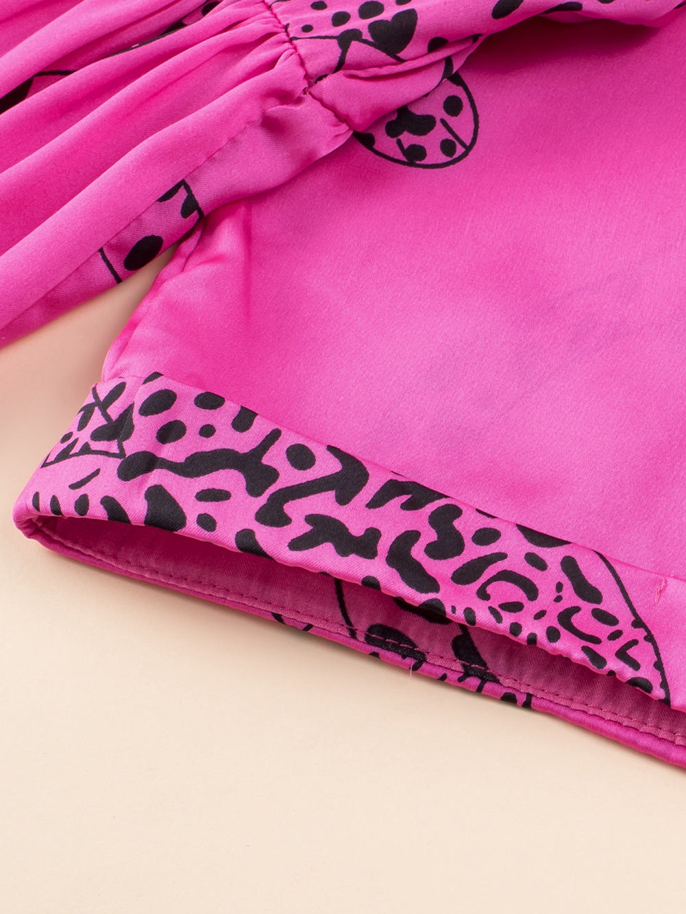 Picture an upscale gala where the ambiance is filled with soft music and the twinkling of chandeliers. As you arrive, heads turn in your direction, captivated by the eye-catching rose color adorned with leopard print. The half sleeves and high waistline create a flattering silhouette, allowing you to move gracefully across the ballroom floor. Pairing this dress with statement earrings and sleek heels, you confidently engage in conversation, exuding sophistication and charm throughout the night.