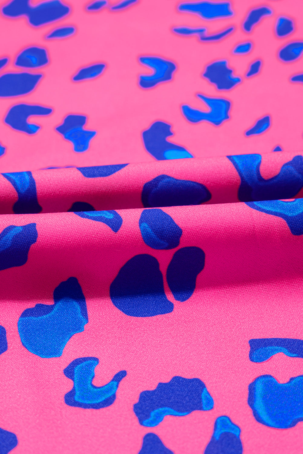 Rose Contrast Leopard Print Plus Size V Neck Blouse