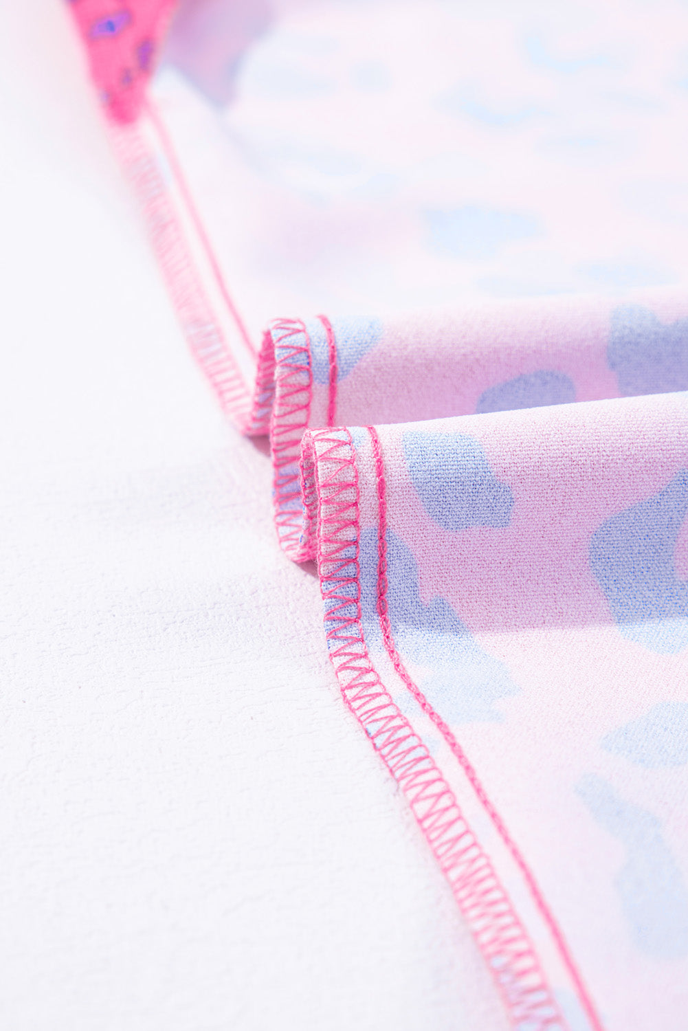 Upgrade Your Wardrobe with our Rose Contrast Leopard Print Plus Size V Neck Blouse