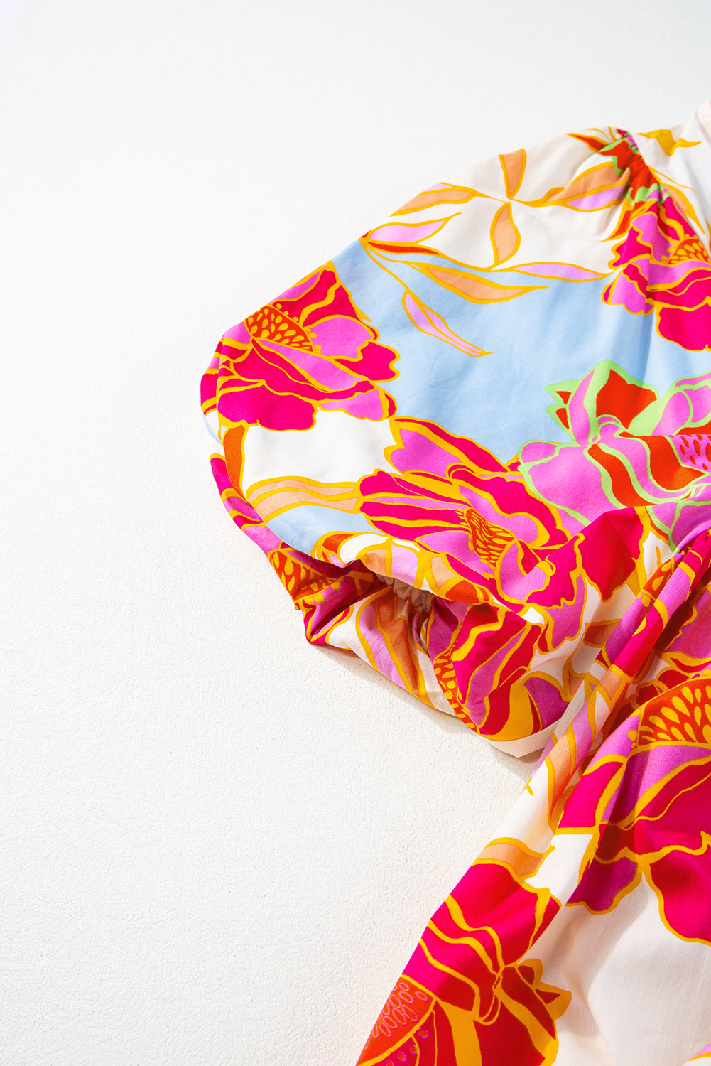 Discover the magic of the Rose Floral Print Split Neck Babydoll Dress and bloom in every occasion.