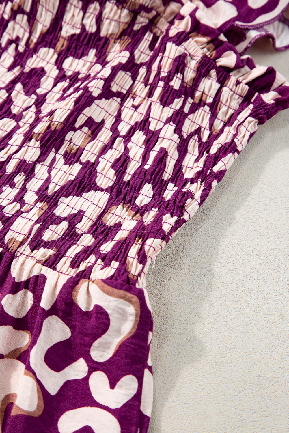 Rose Leopard Ruffle Straps Smocked High Waist Long Dress
