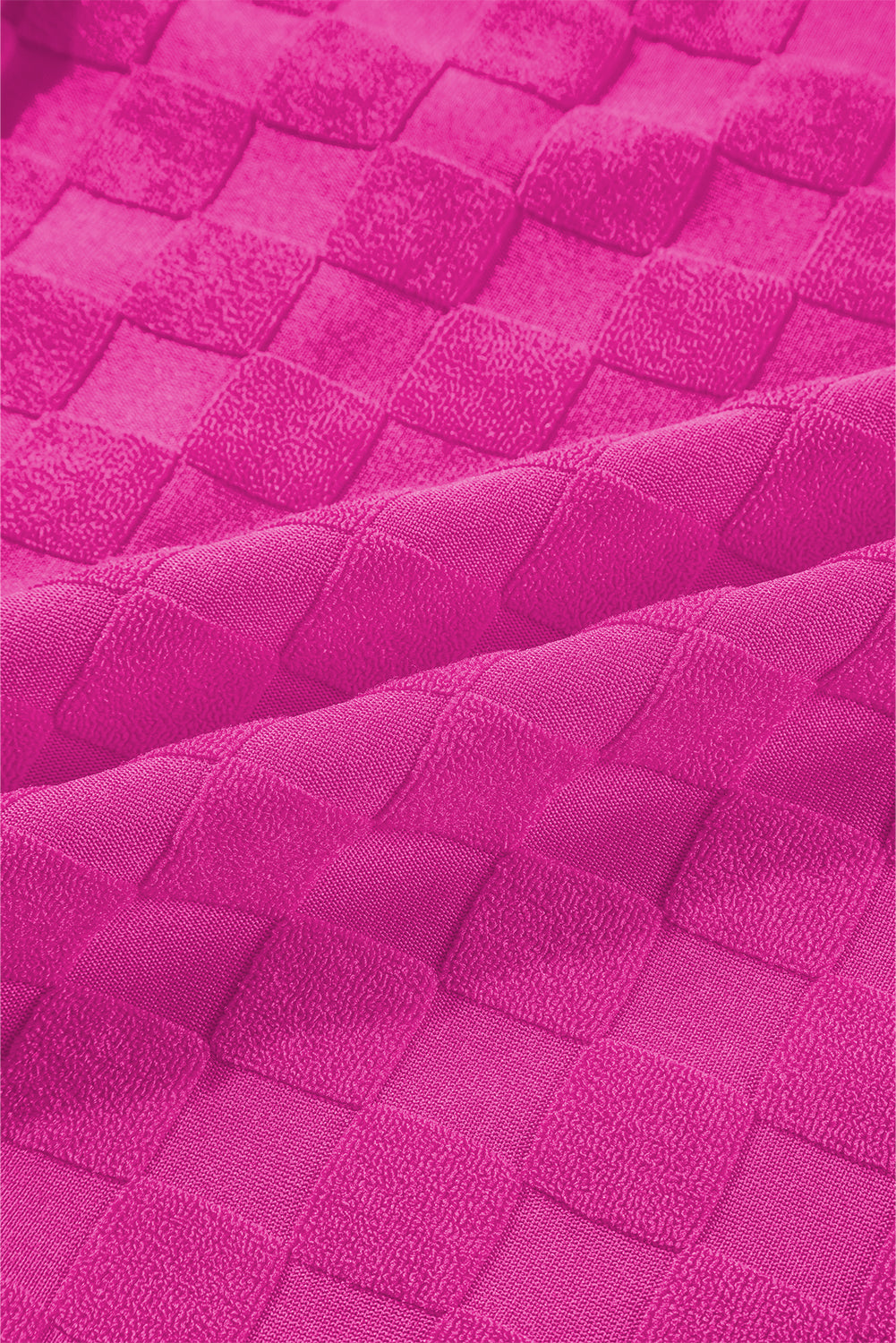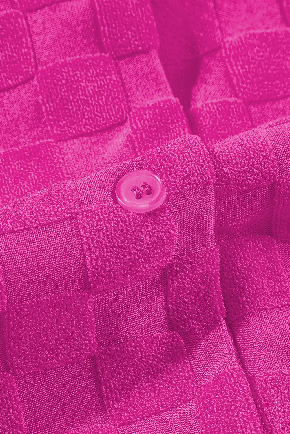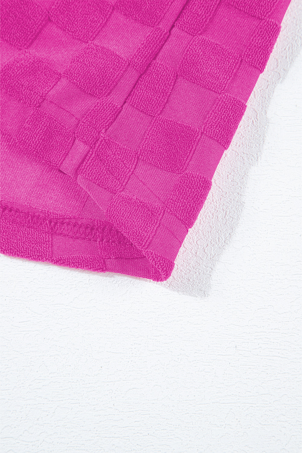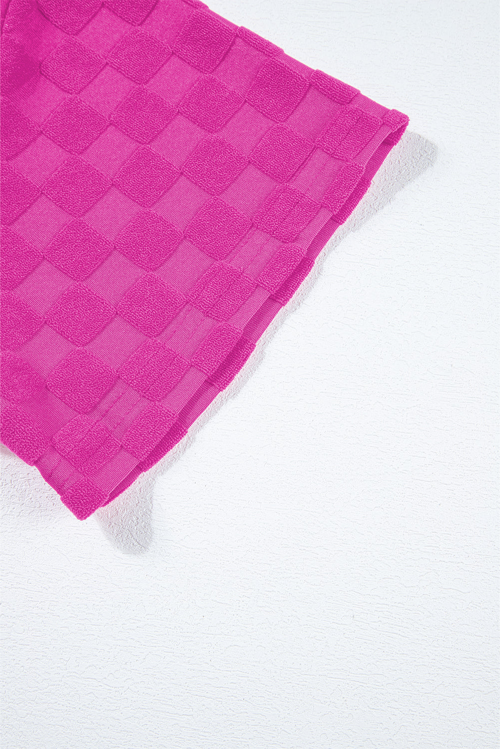 Rose Red Checkered Textured Short Sleeve Plus Shirt
