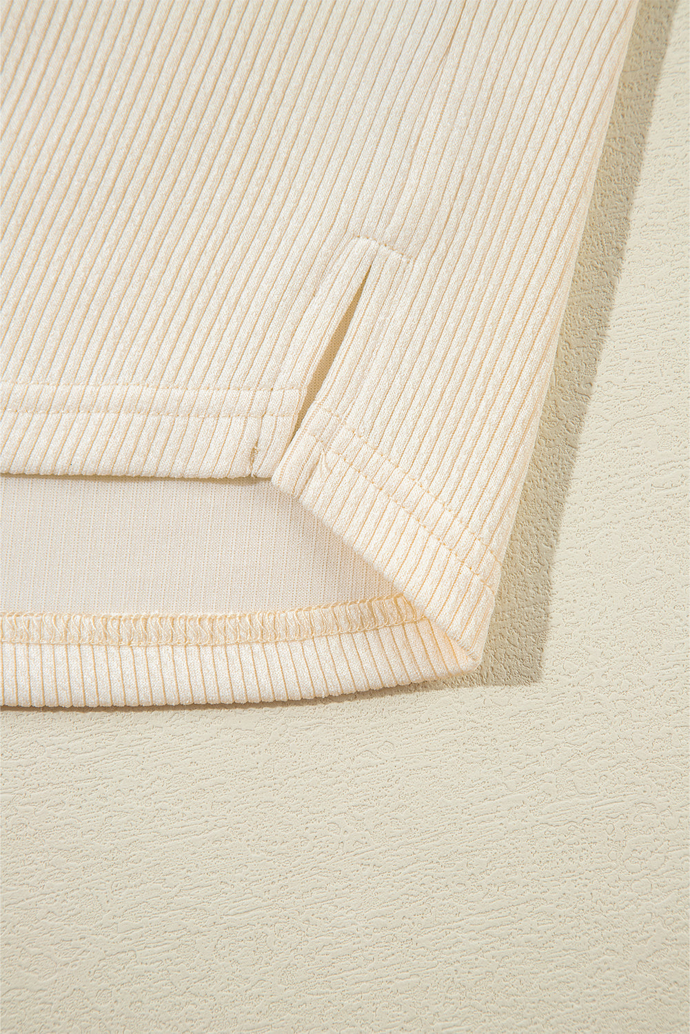 Rose Red Colorblock Ribbed Collared Oversized Sweatshirt