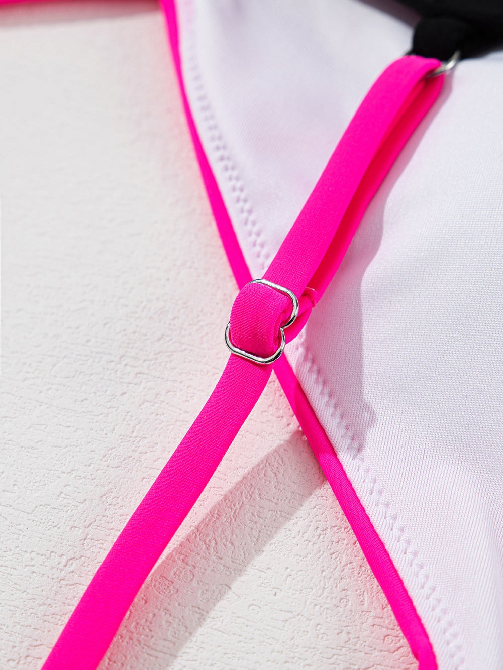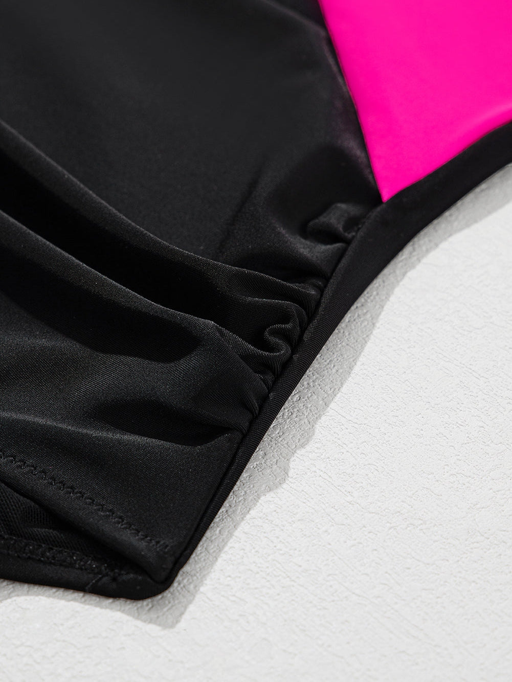 Rose Red Crossover Colorblock Cutout One Piece Swimsuit