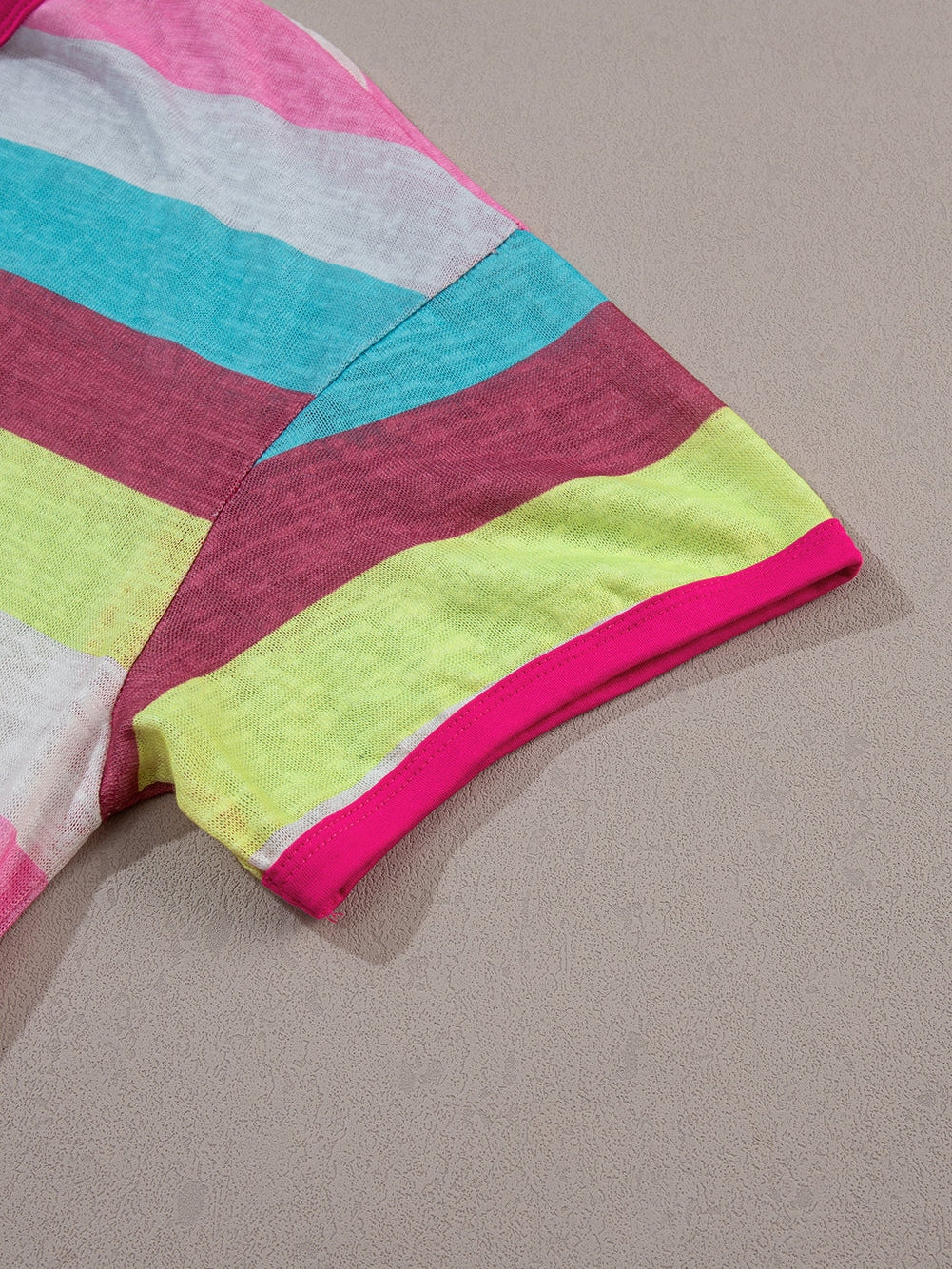 Rose Stripe Plus Size Textured Knit Short Sleeve Henley Top
