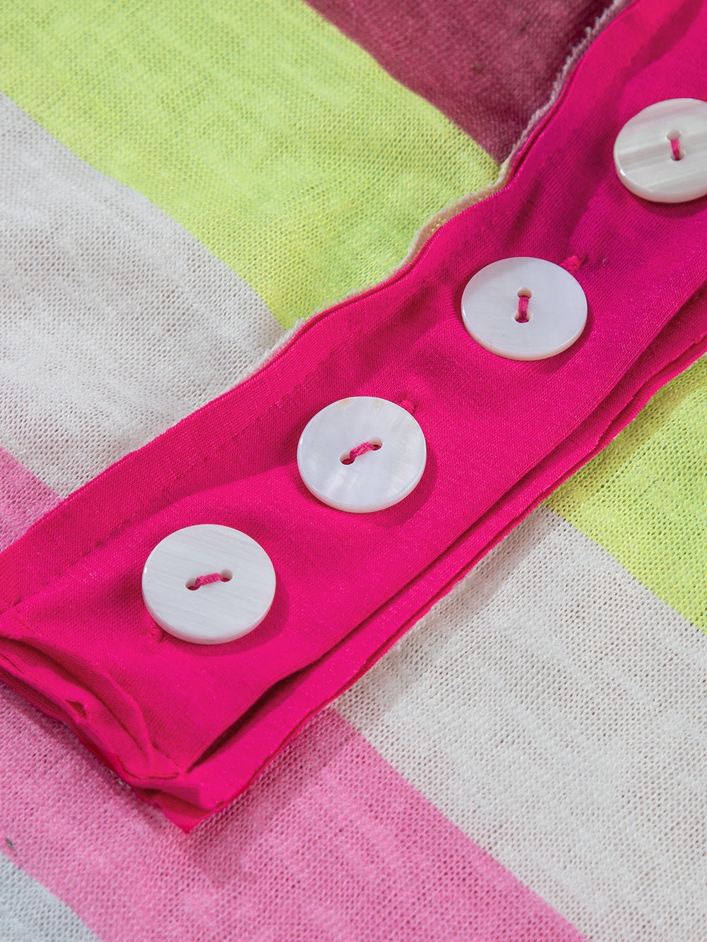 - Eye-Catching Design: Stand out in the crowd with the multicolor striped pattern of this Henley top.