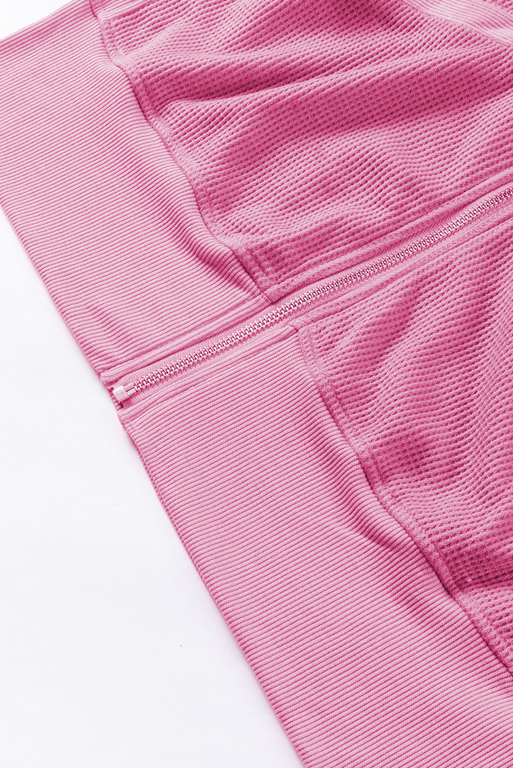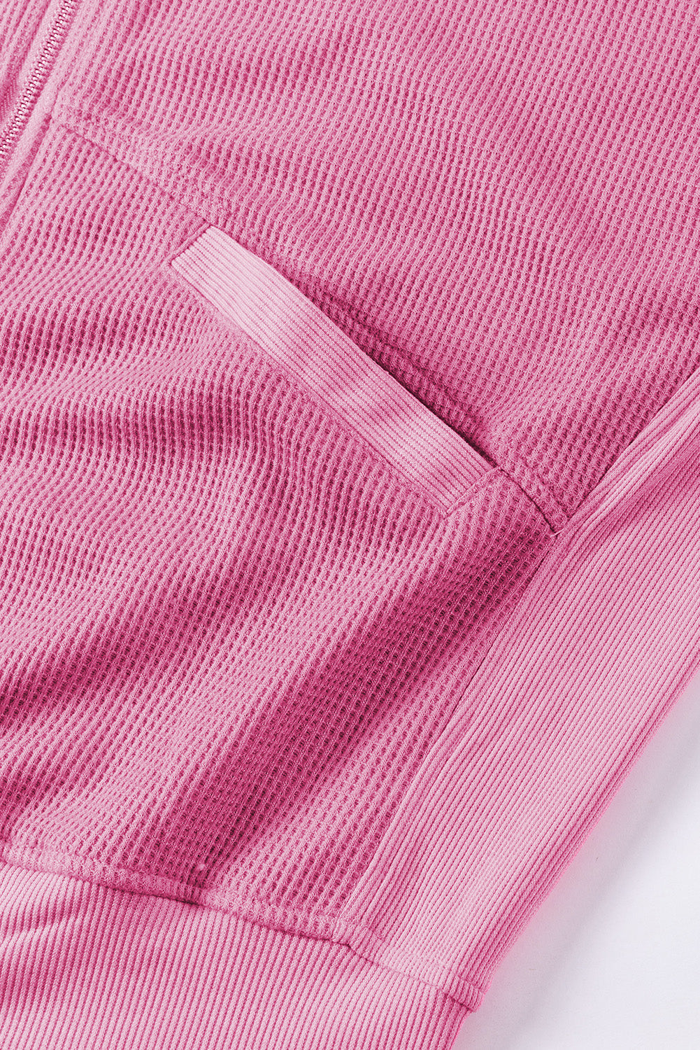 Rose Thermal Waffle Knit Full Zipper Hooded Jacket