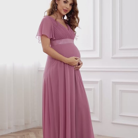 Consider a formal dinner with close family and friends to celebrate your upcoming arrival. You choose this exquisite maternity dress to make a lasting impression. The ruffled sleeves and elegant design reflect your personal style while ensuring you feel confident and relaxed. As you gather around the table, the dress beautifully highlights your silhouette, and the flowy chiffon allows you to enjoy a delectable meal without feeling restricted. The night is filled with laughter, heartfelt conversations, and cherished memories, all while you look stunning in your elegant dress.