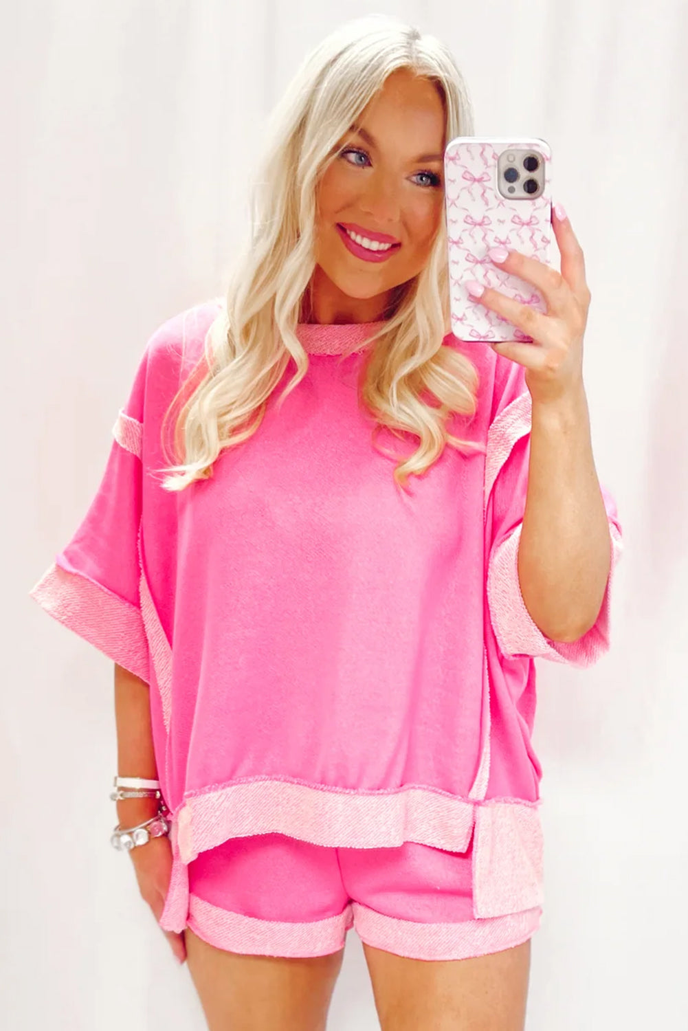 Sachet Pink Terry Cloth Colour Blocking Shorts Set